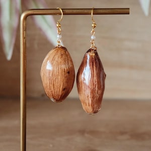 These exceptional earrings are made from real, hand-picked coffee beans, carefully sealed with resin. Each pair is unique—rustic, charming, and perfect for coffee lovers.