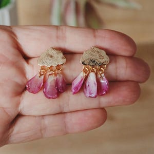 These delicate earrings are made from real pea plant flowers, cast in resin to preserve their natural beauty forever.