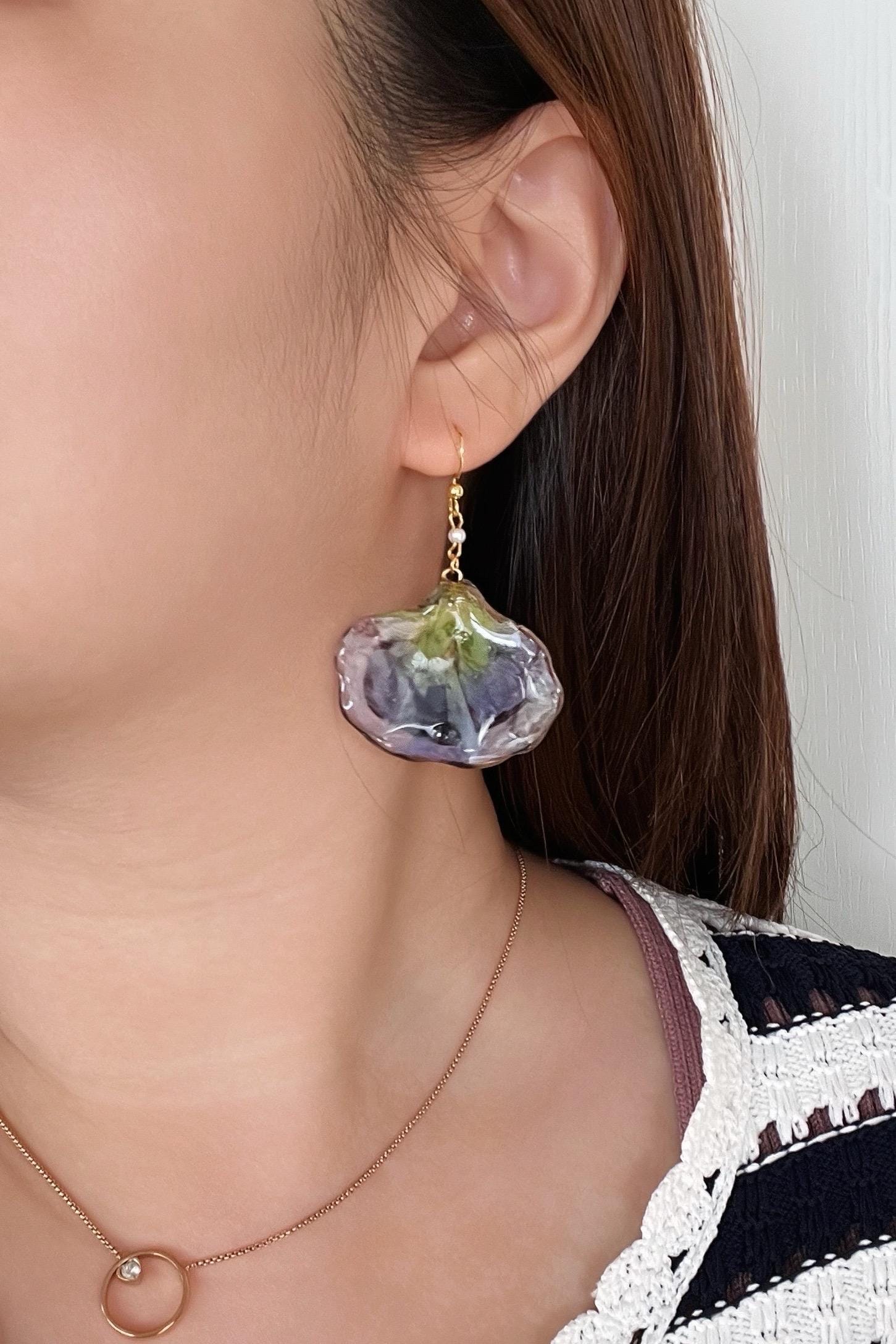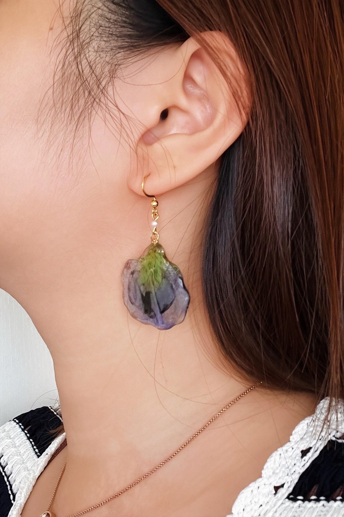 Details: • Materials: Real sweet pea petals, resin, brass hooks • Total length: Approx. 5.5-6cm • Lightweight & comfortable to wear