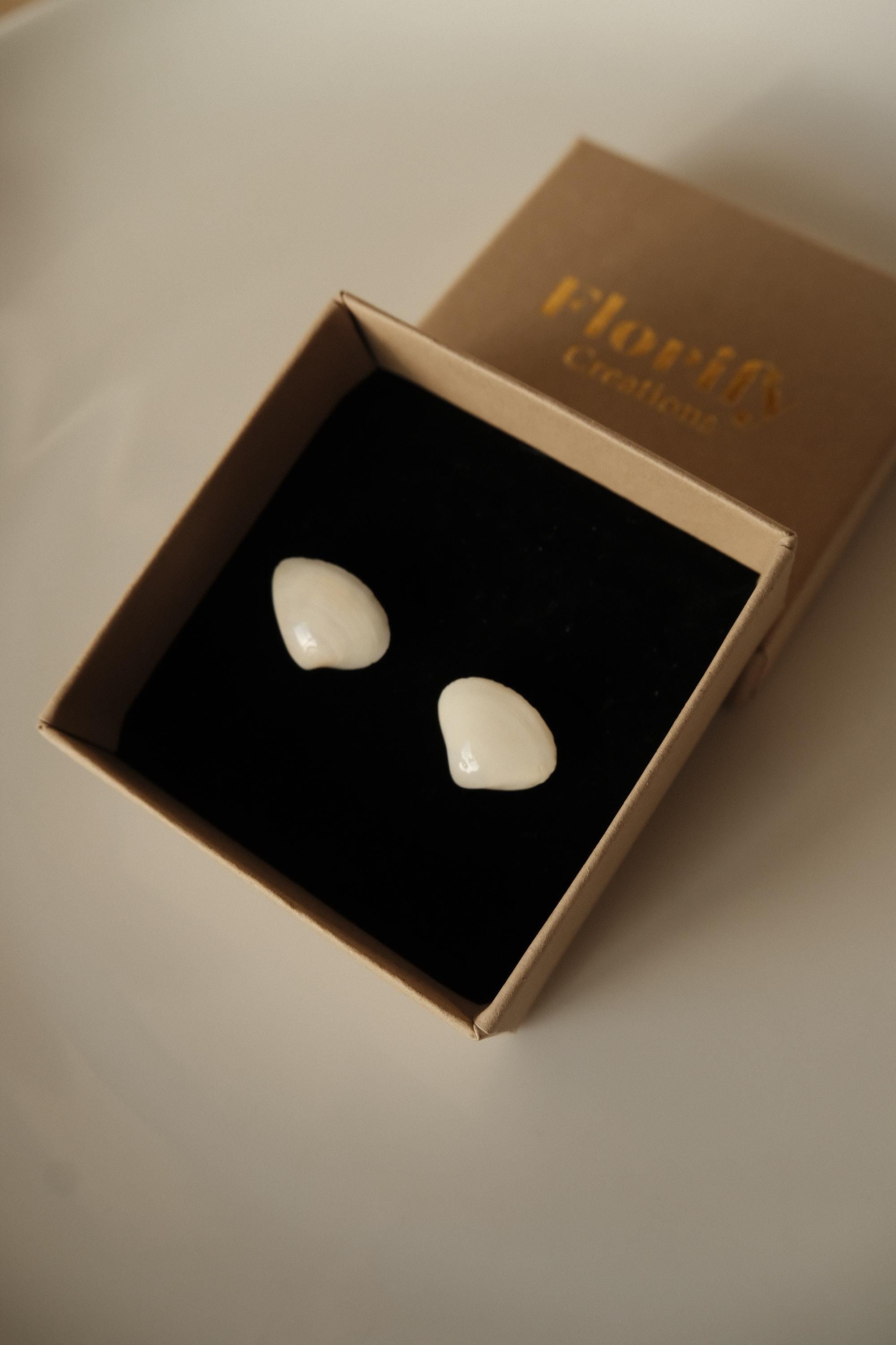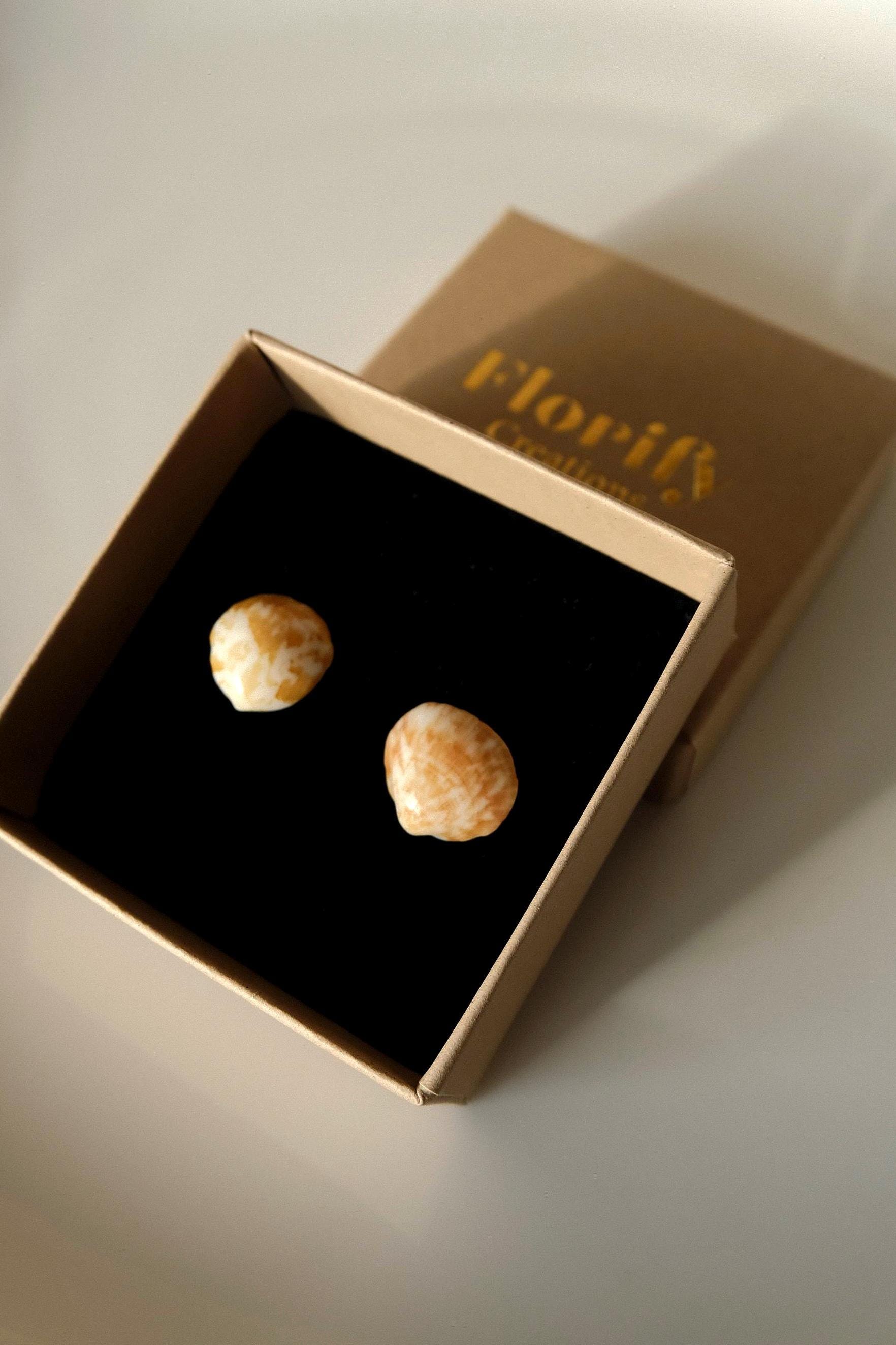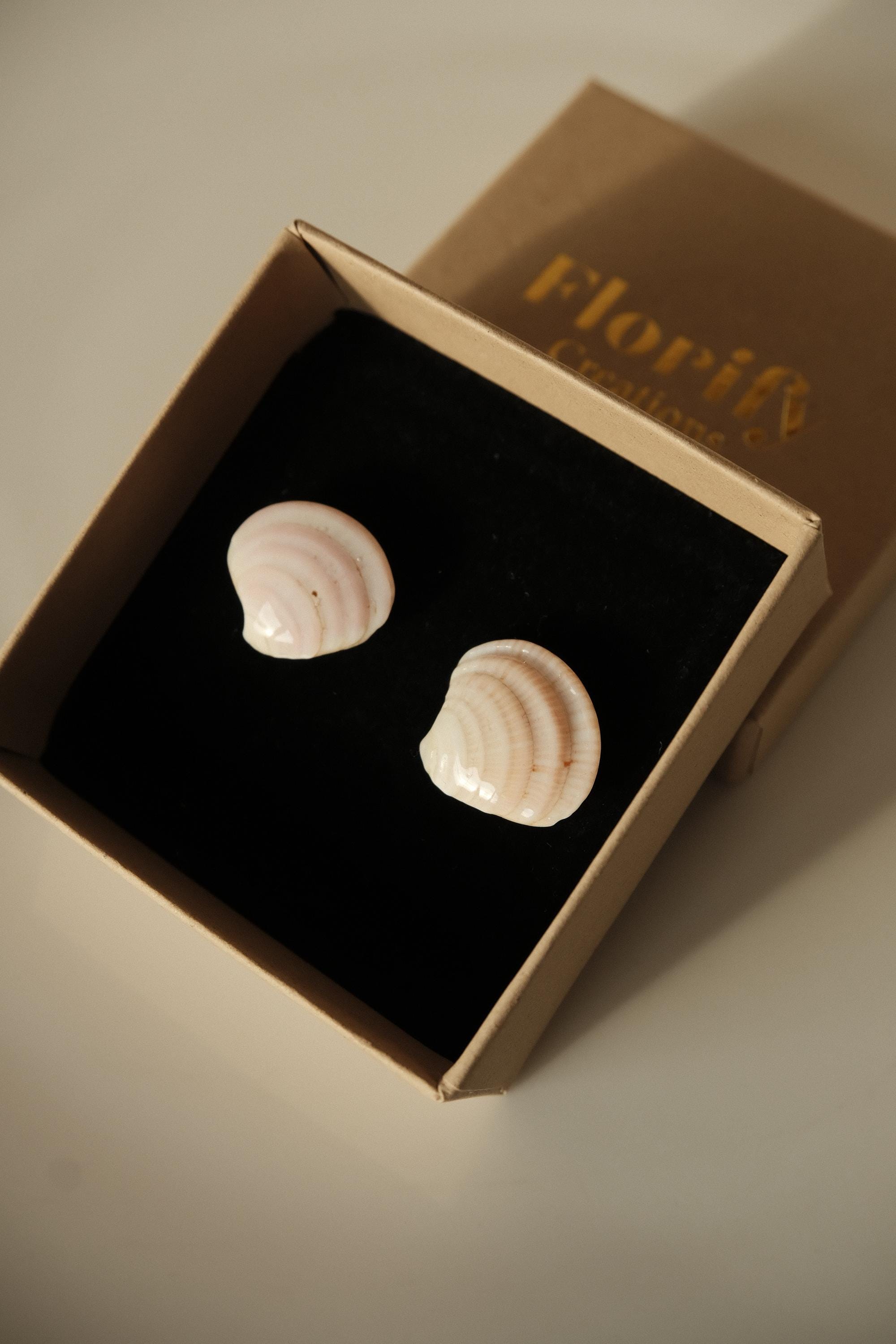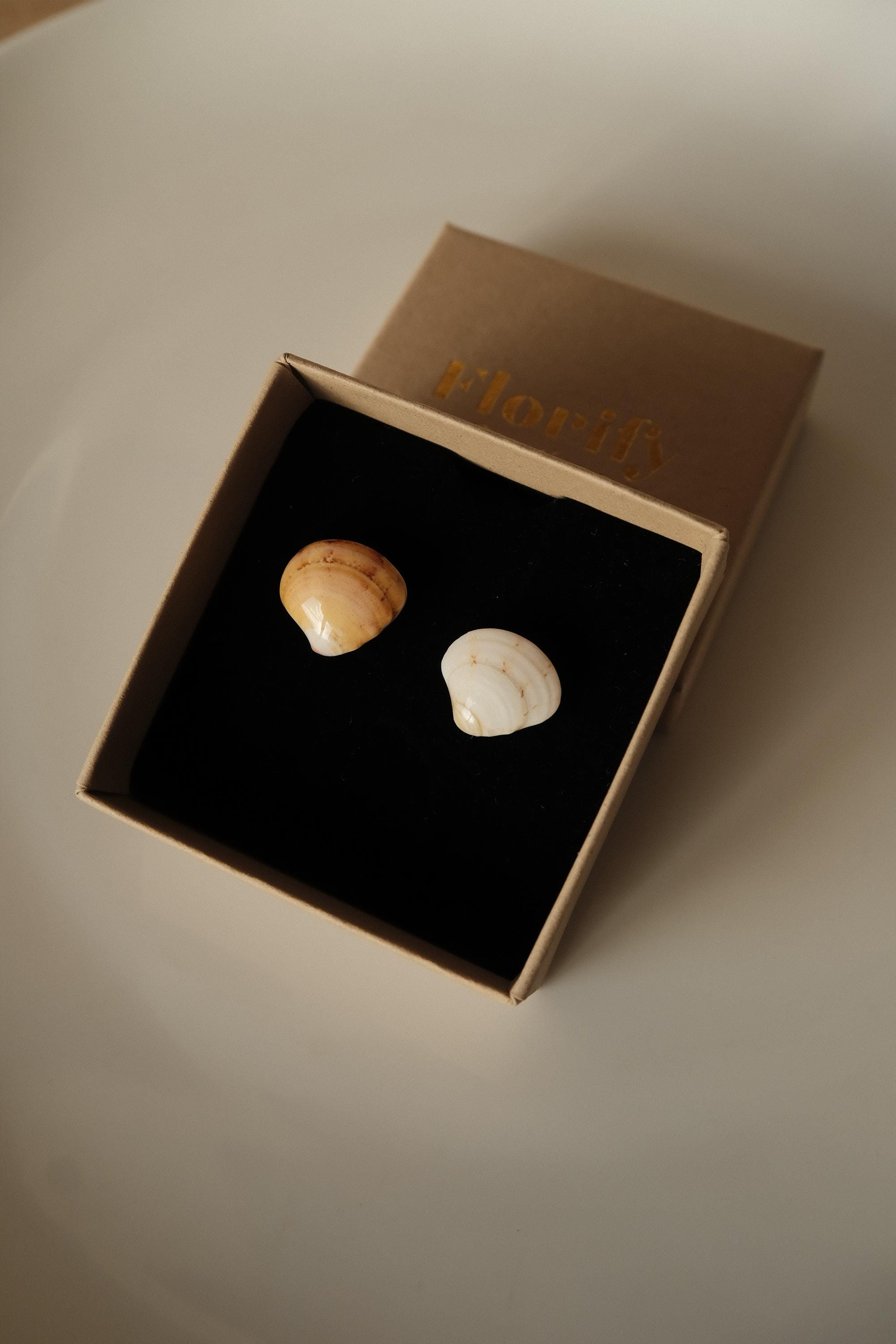 ✨ Details • Real seashells collected on Portugal beaches • Handmade one-of-a-kind pair • Coated with UV resin for shine + protection • Lightweight & comfortable for daily wear • Stainless steel or hypoallergenic stud backs (choose your option) • Each pair has its own natural shape & pattern