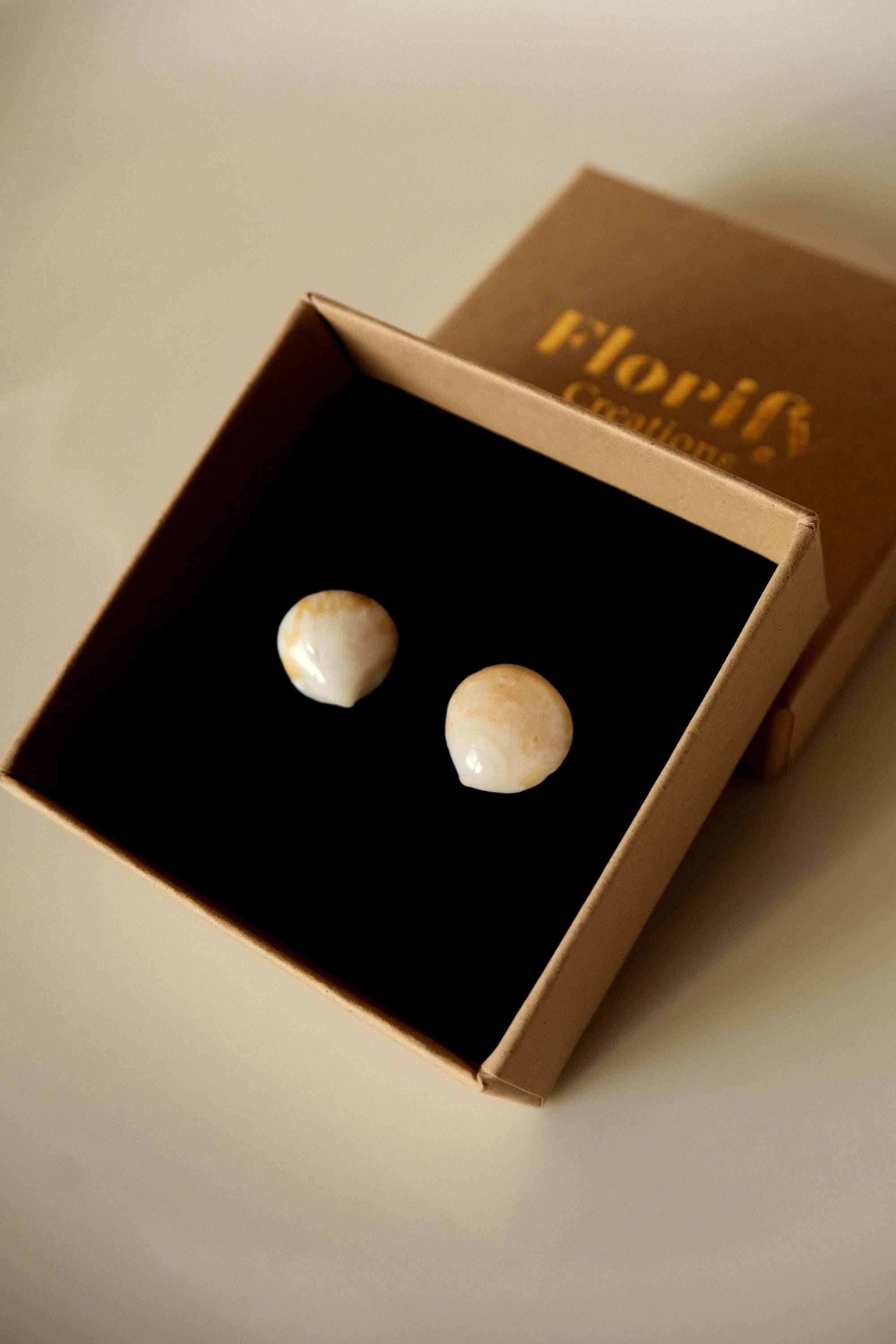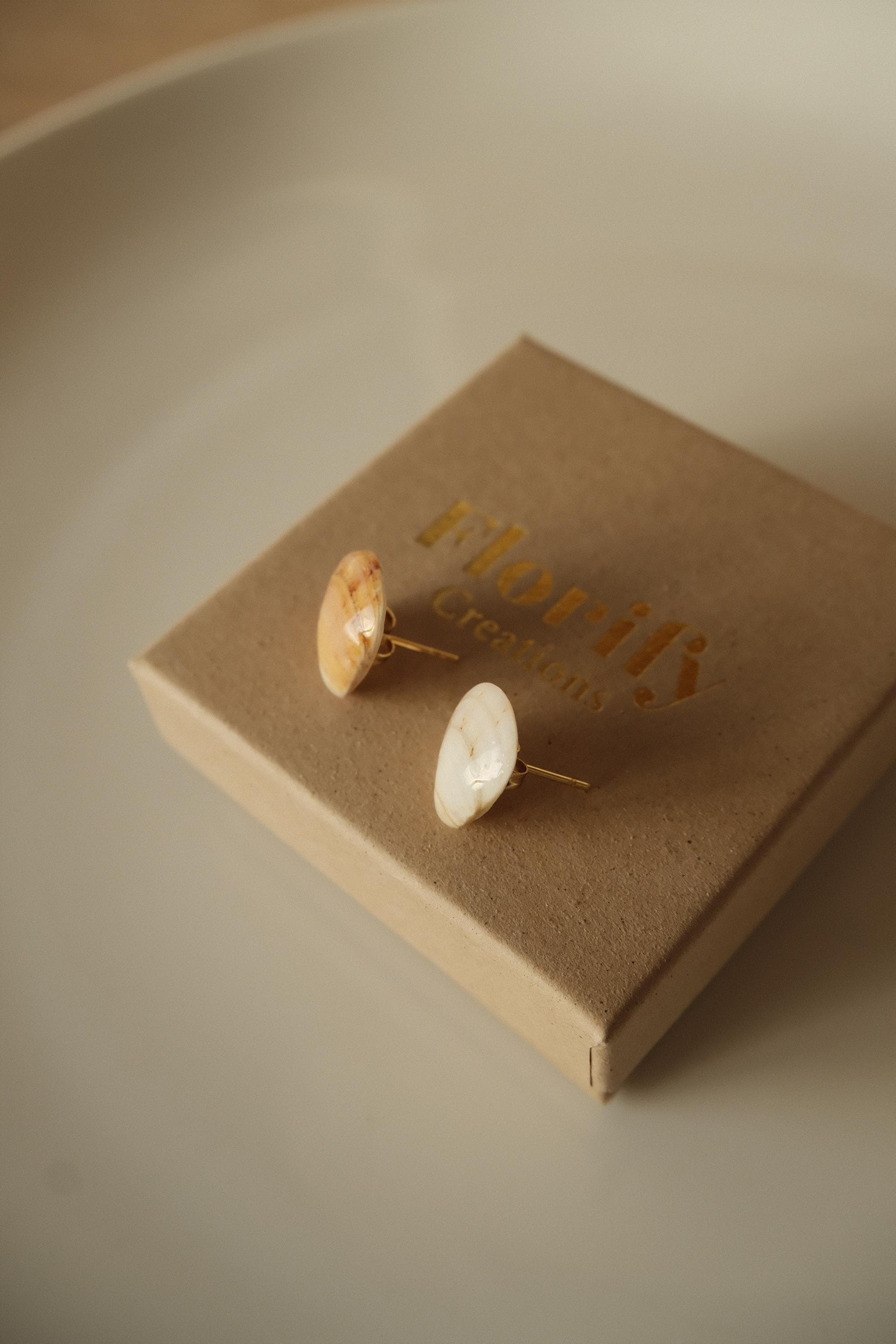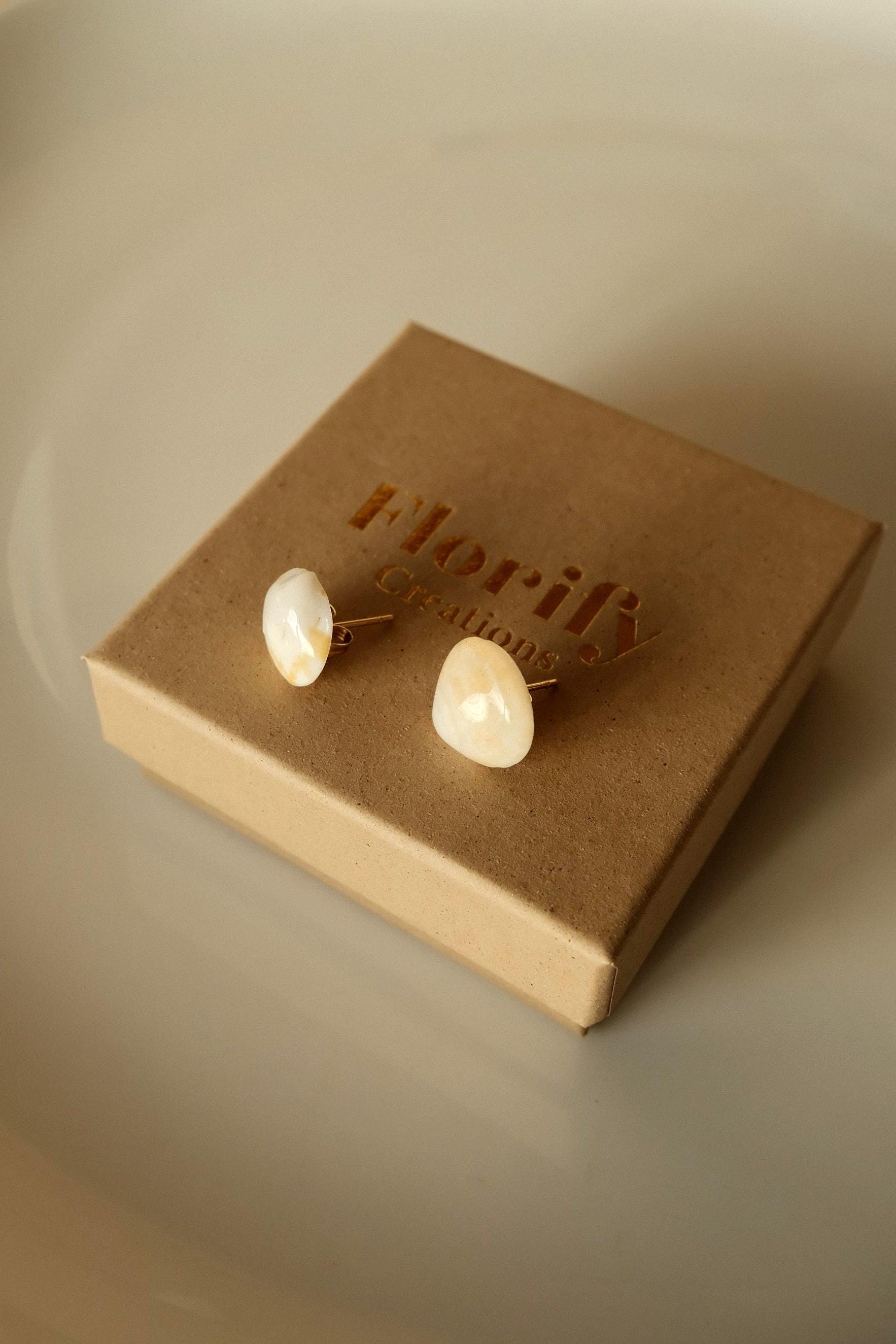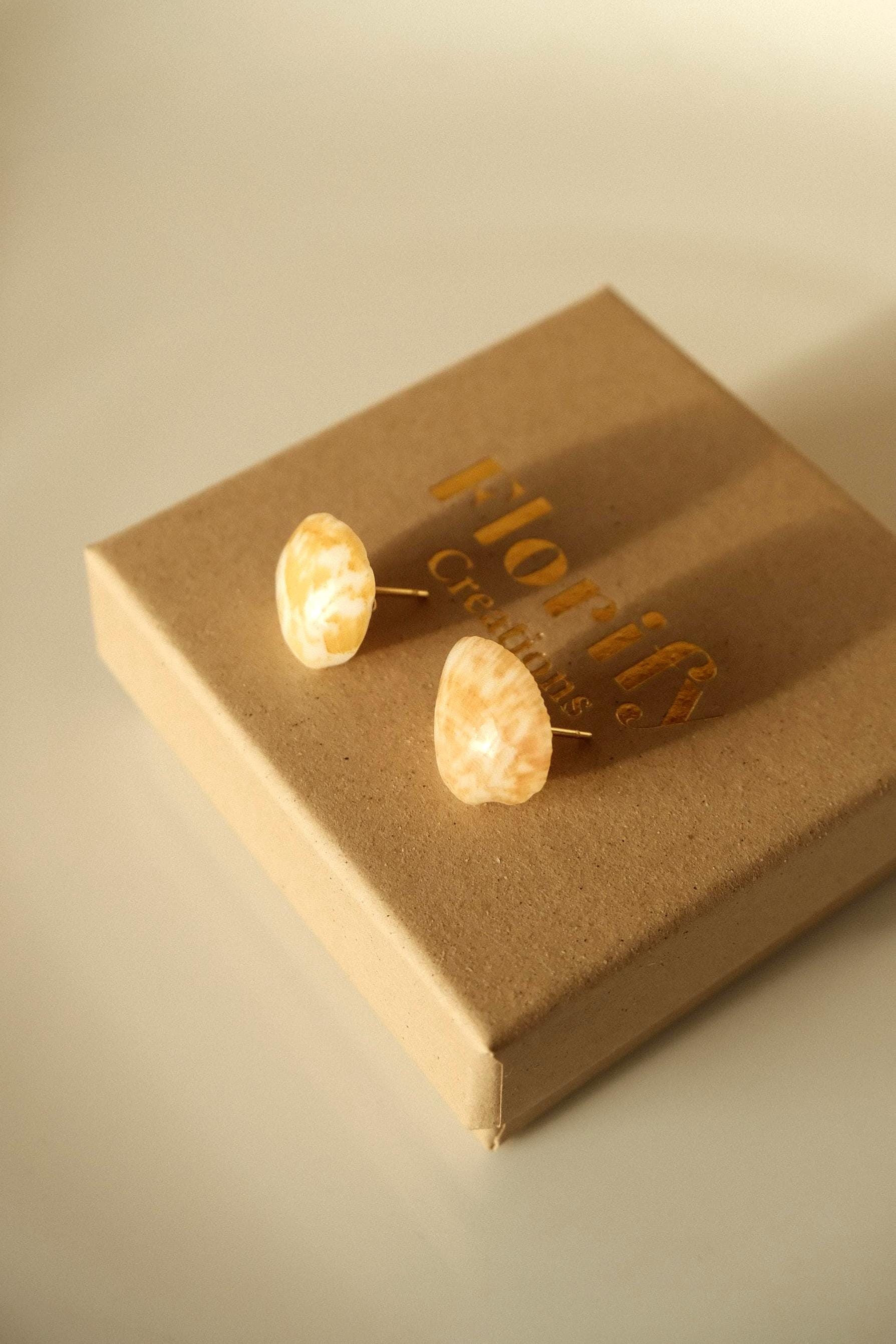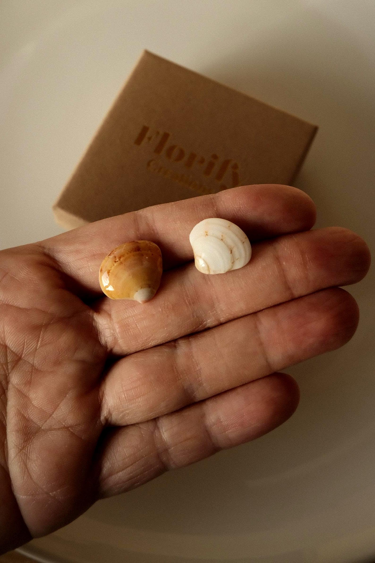 ✨ Details • Real seashells collected on Portugal beaches • Handmade one-of-a-kind pair • Coated with UV resin for shine + protection • Lightweight & comfortable for daily wear • Stainless steel or hypoallergenic stud backs (choose your option) • Each pair has its own natural shape & pattern