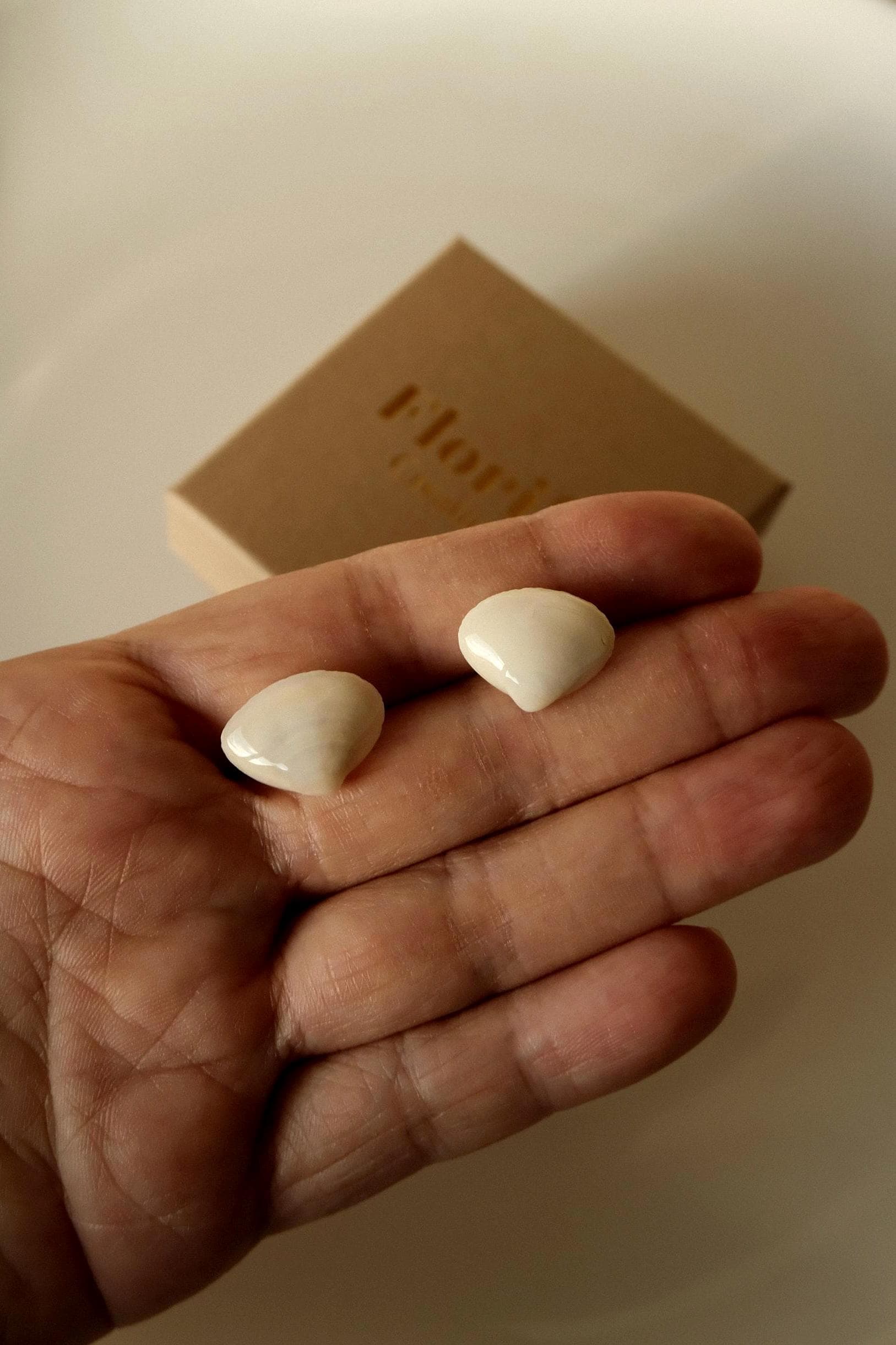 Bring a little piece of the ocean with you. These tiny seashell stud earrings are handmade from real shells I personally collected on the beaches of Portugal. Each pair is one of a kind — shaped by nature, preserved by hand.