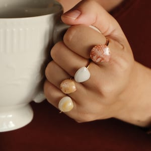 Wearing it feels like carrying a piece of the sea with you—soft, grounded, and full of stories. • ✧ Genuine beach pebble from southern Portugal • ✧ One-of-a-kind – no two rings are ever the same • ✧ Adjustable gold-plated open band • ✧ Lightweight and comfortable • ✧ Handmade with love in Germany