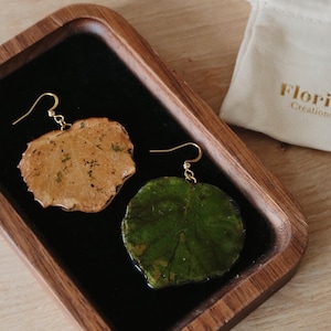 These earrings are perfect for plant lovers, nature enthusiasts, or anyone who enjoys unique, handcrafted jewelry. Whether you choose deep green, soft beige, or autumn brown tones, each pair tells its own story from nature.