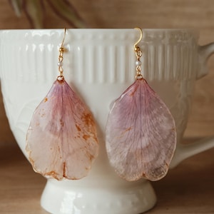✨ Details: • Materials: Real daylily petals, UV resin, gold-tone stainless steel hooks • Lightweight despite their size • Approx. length: See images for scale