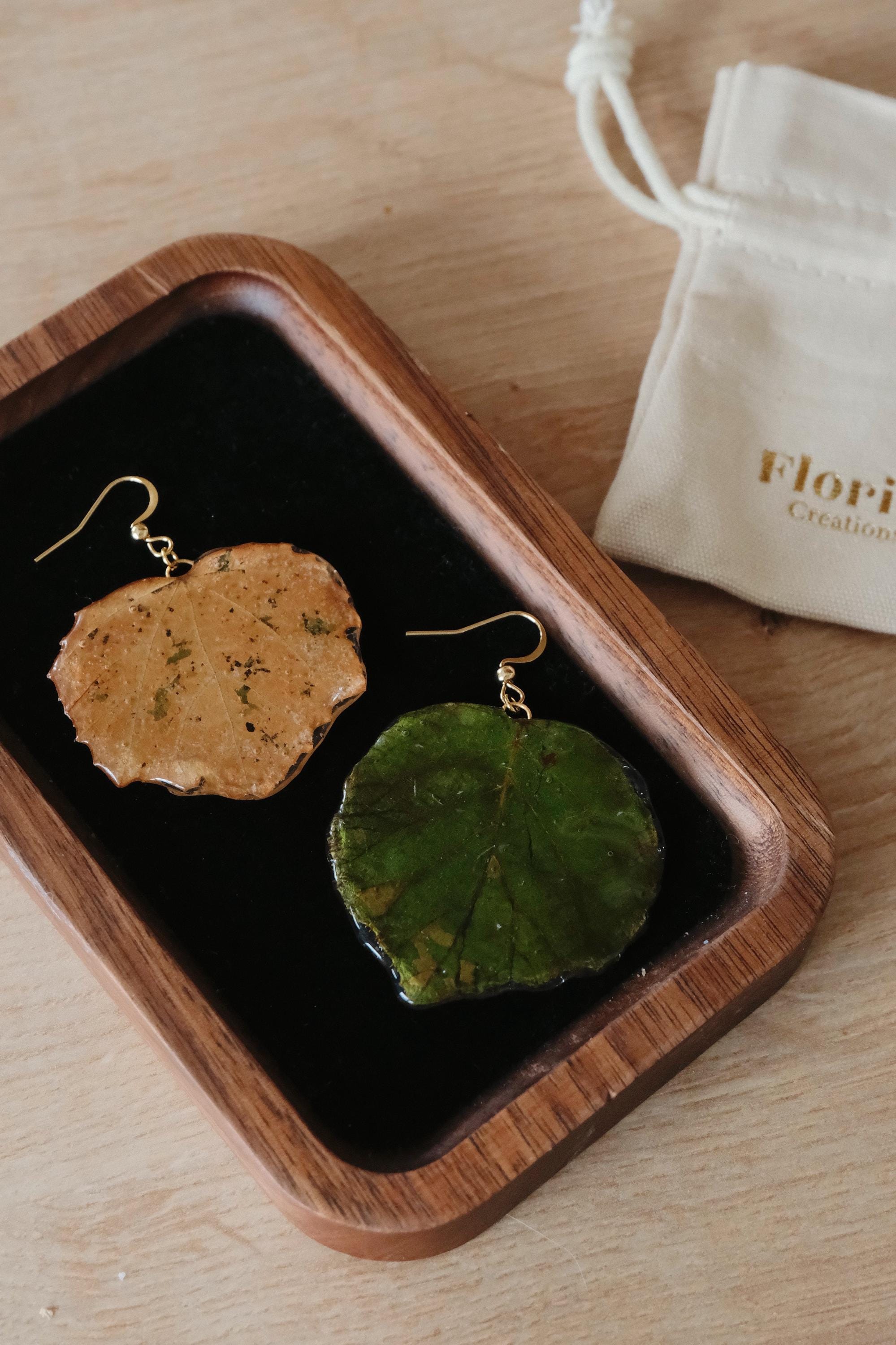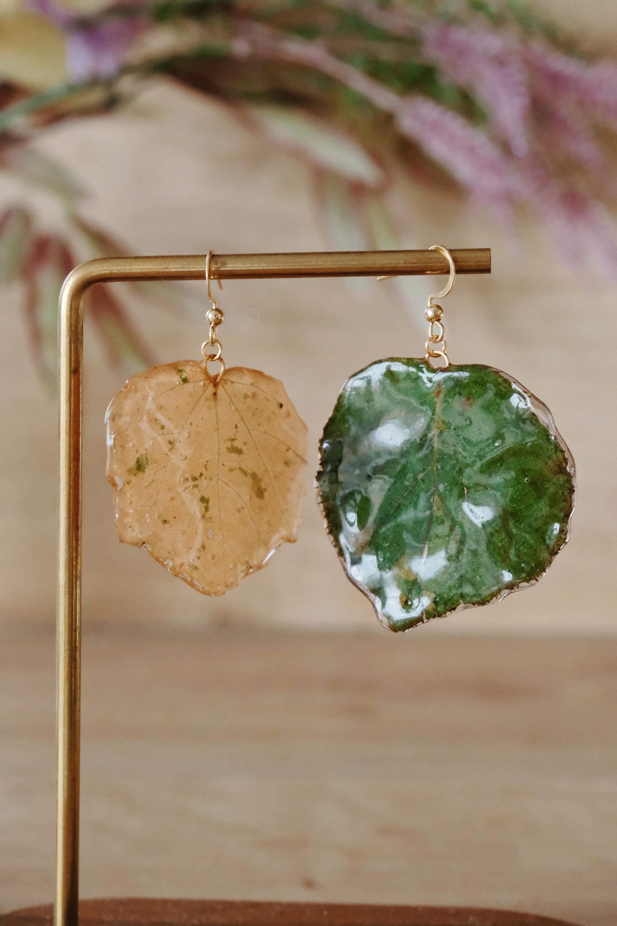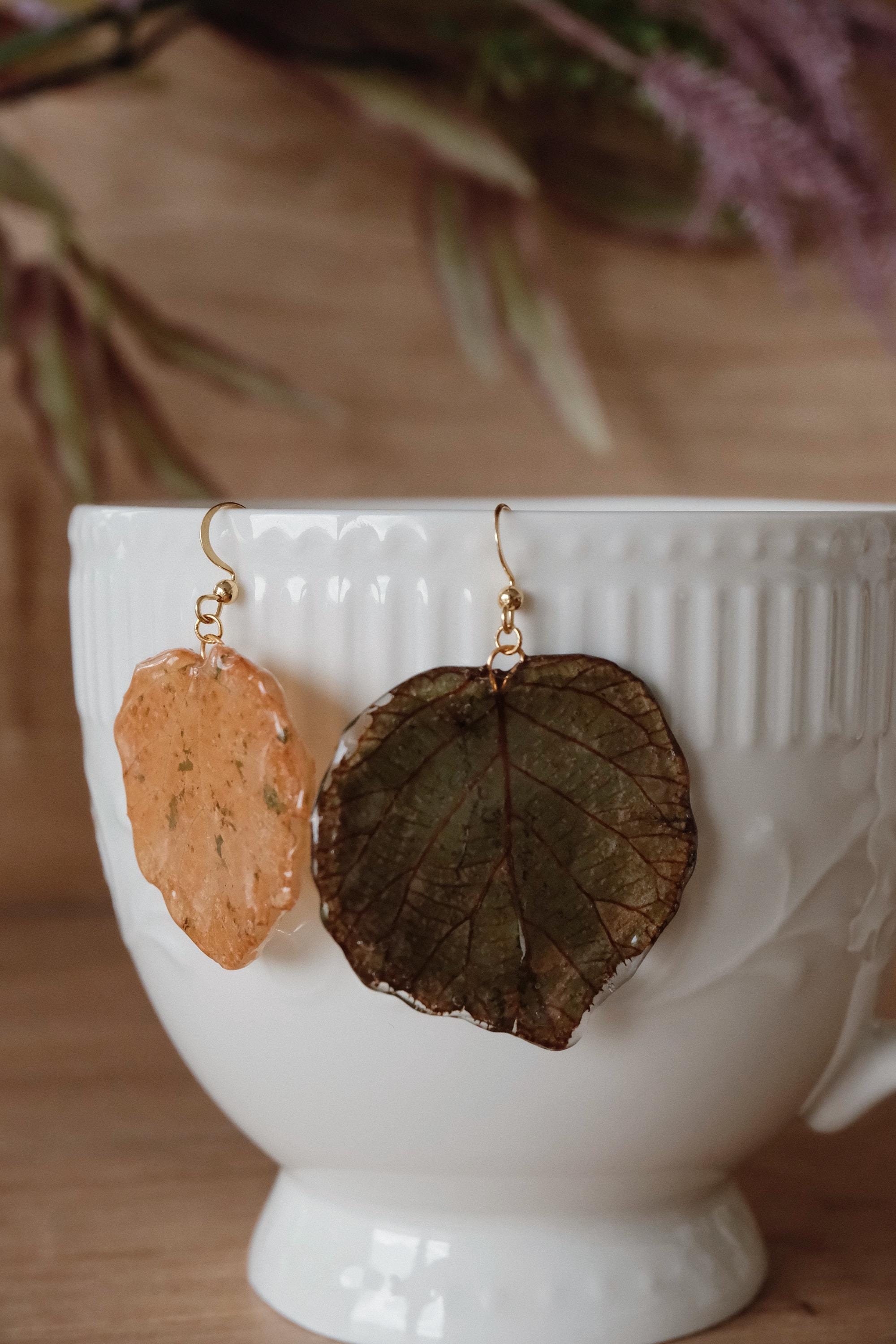 Bring the magic of autumn into your everyday life. Each pair of these earrings is crafted from real, hand-picked autumn leaves, carefully pressed, and preserved in resin. Each leaf is unique—a piece of nature you can carry with you.