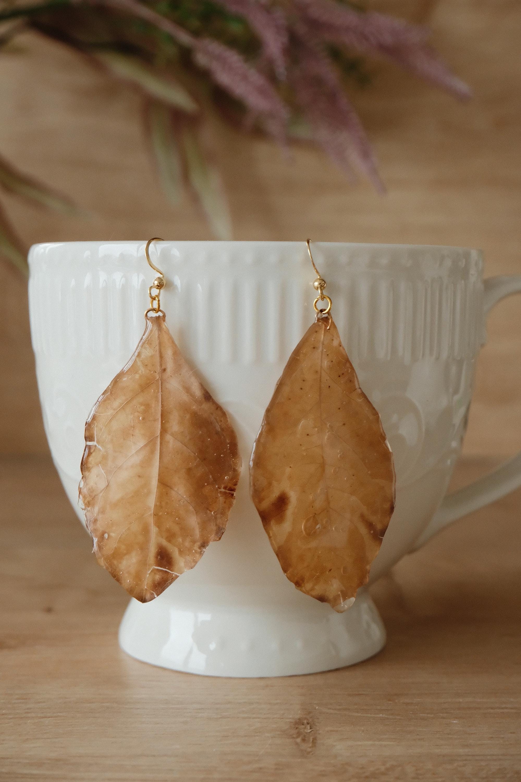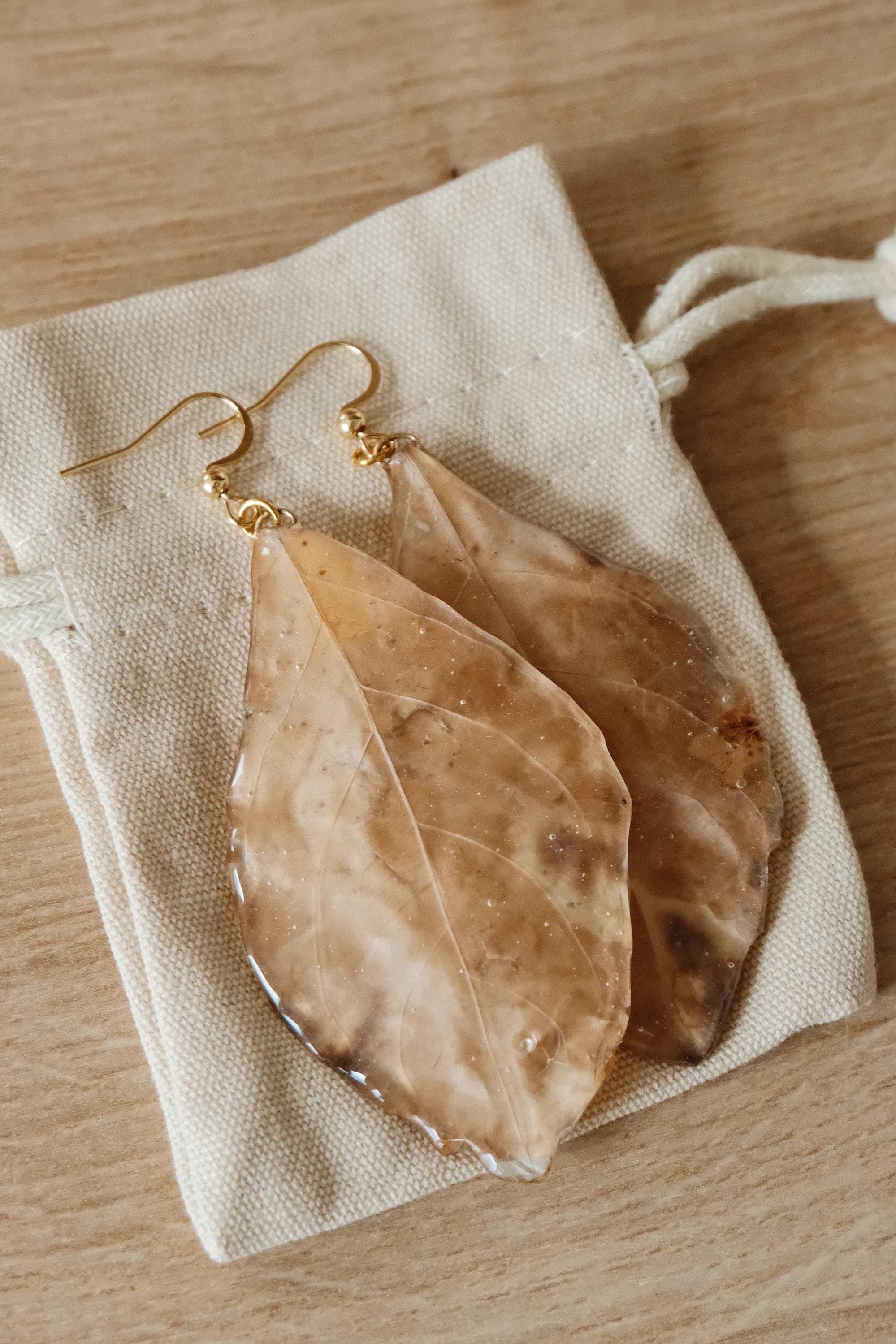 Natürliche Ohrringe mit Herbstblatt – Resin Schmuck Unikat