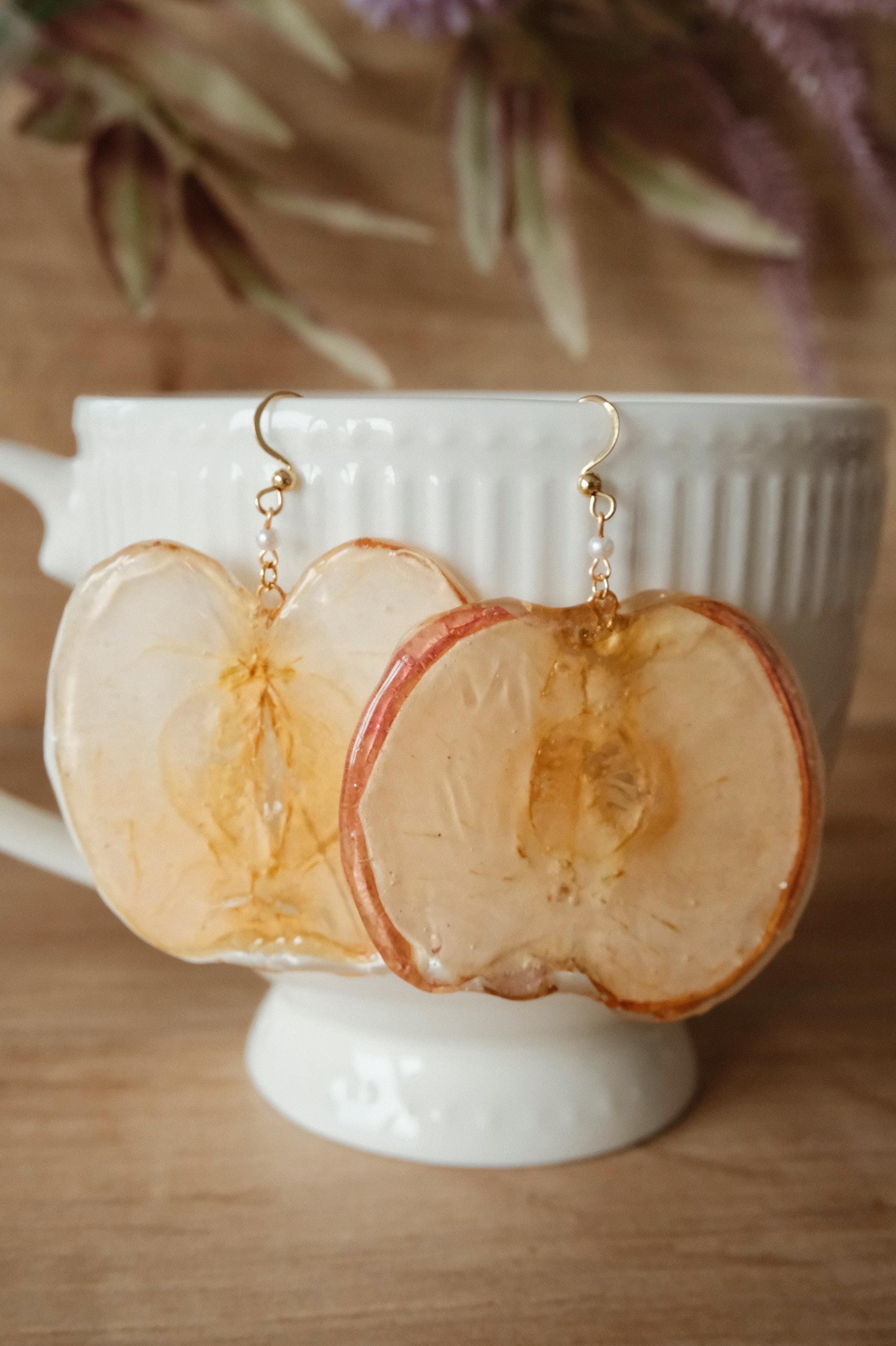 🍂 Materials: • Real dried apple slices • Clear resin coating for durability and shine • Stainless steel hooks (nickel-free)