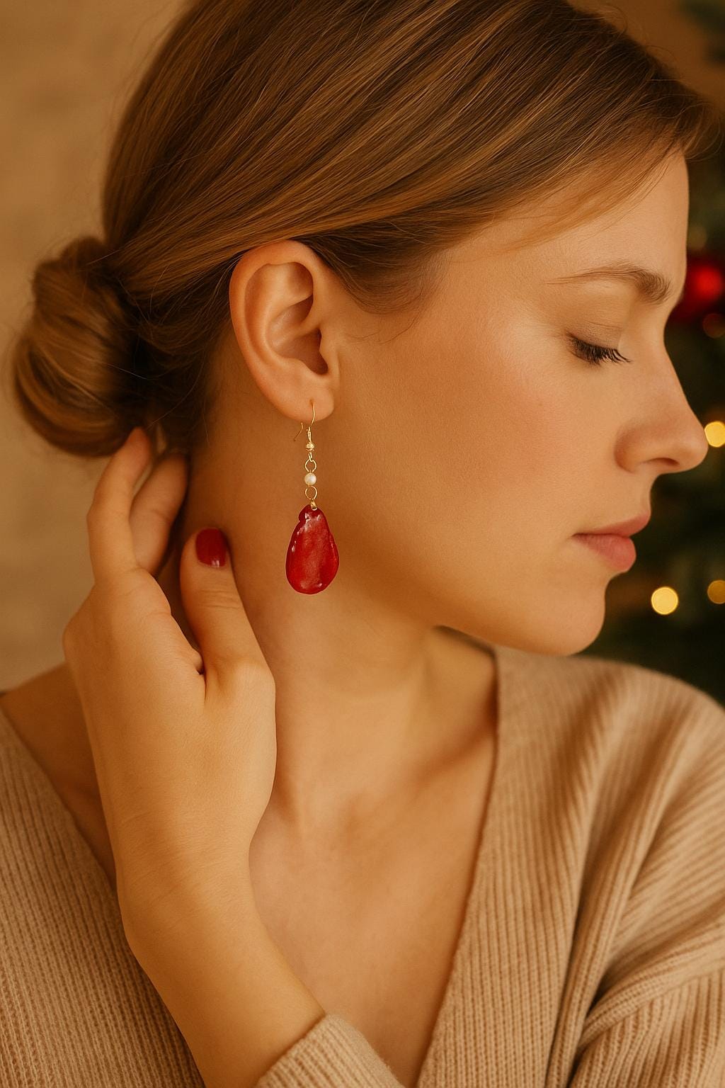 Details: • Materials: Real dried pomegranate flower petals, resin, stainless steel ear hooks • Lightweight and comfortable for daily wear • Each pair is completely unique due to the natural variations of petals