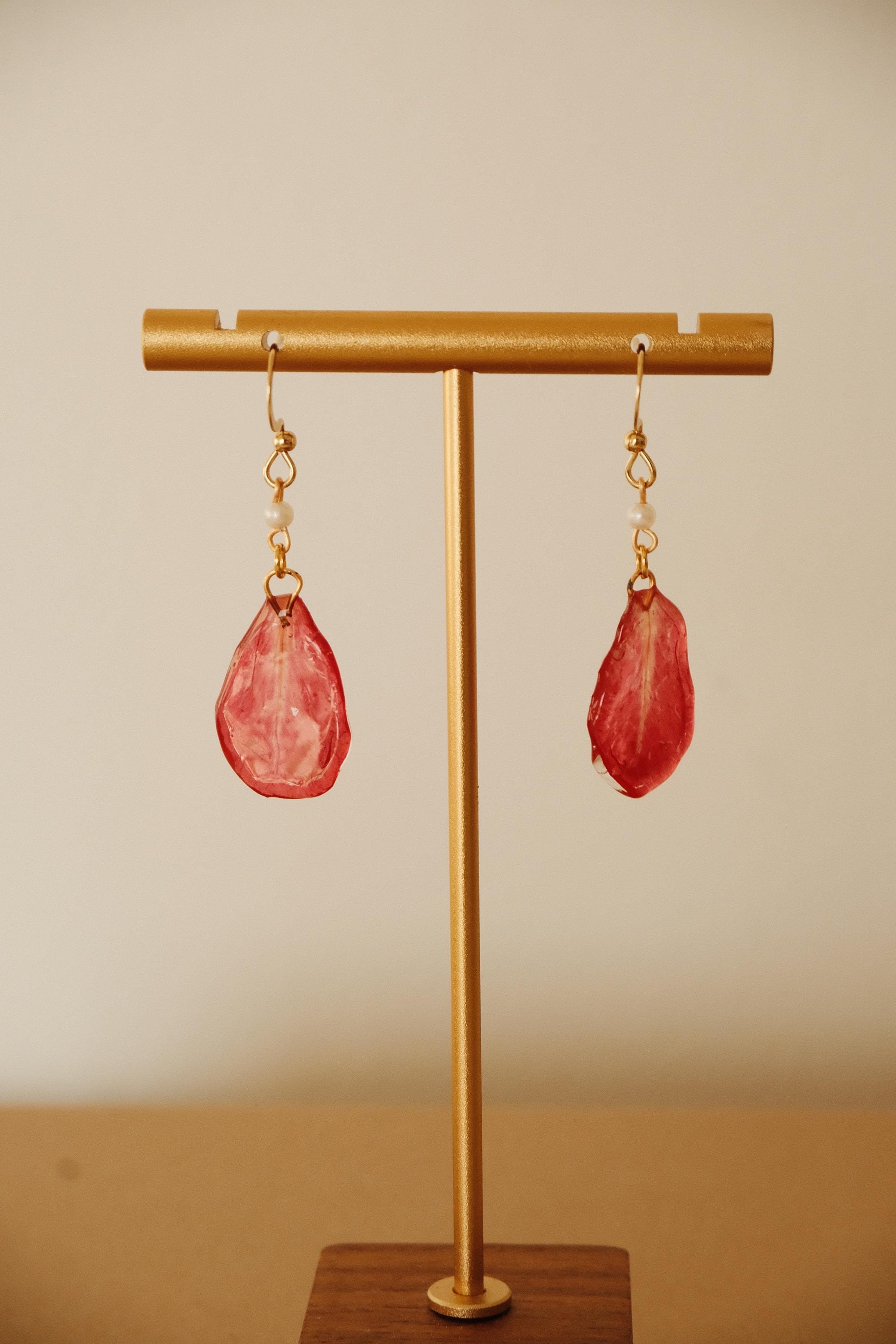 Celebrate nature's fleeting beauty with these one-of-a-kind earrings made from real pomegranate flower petals.