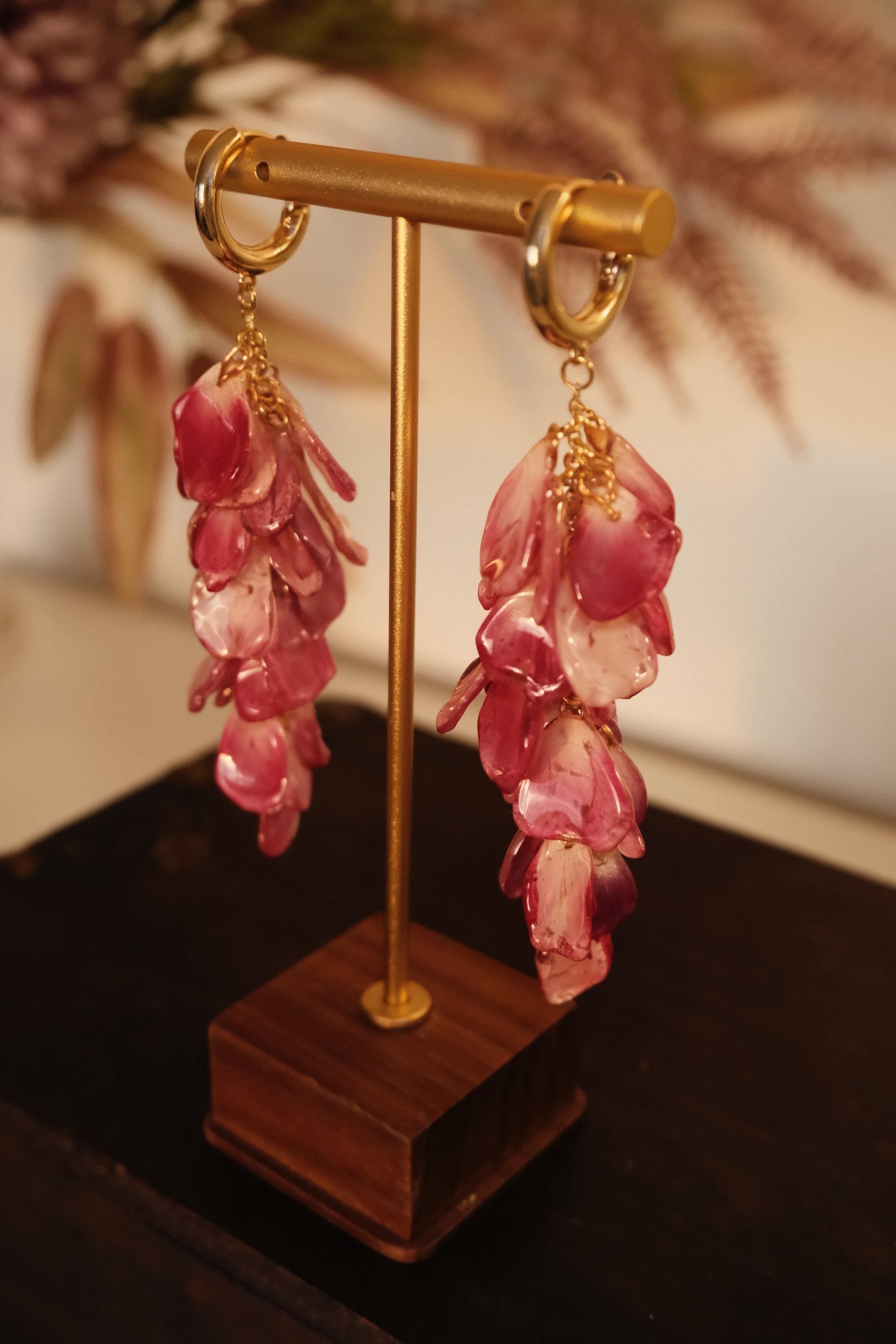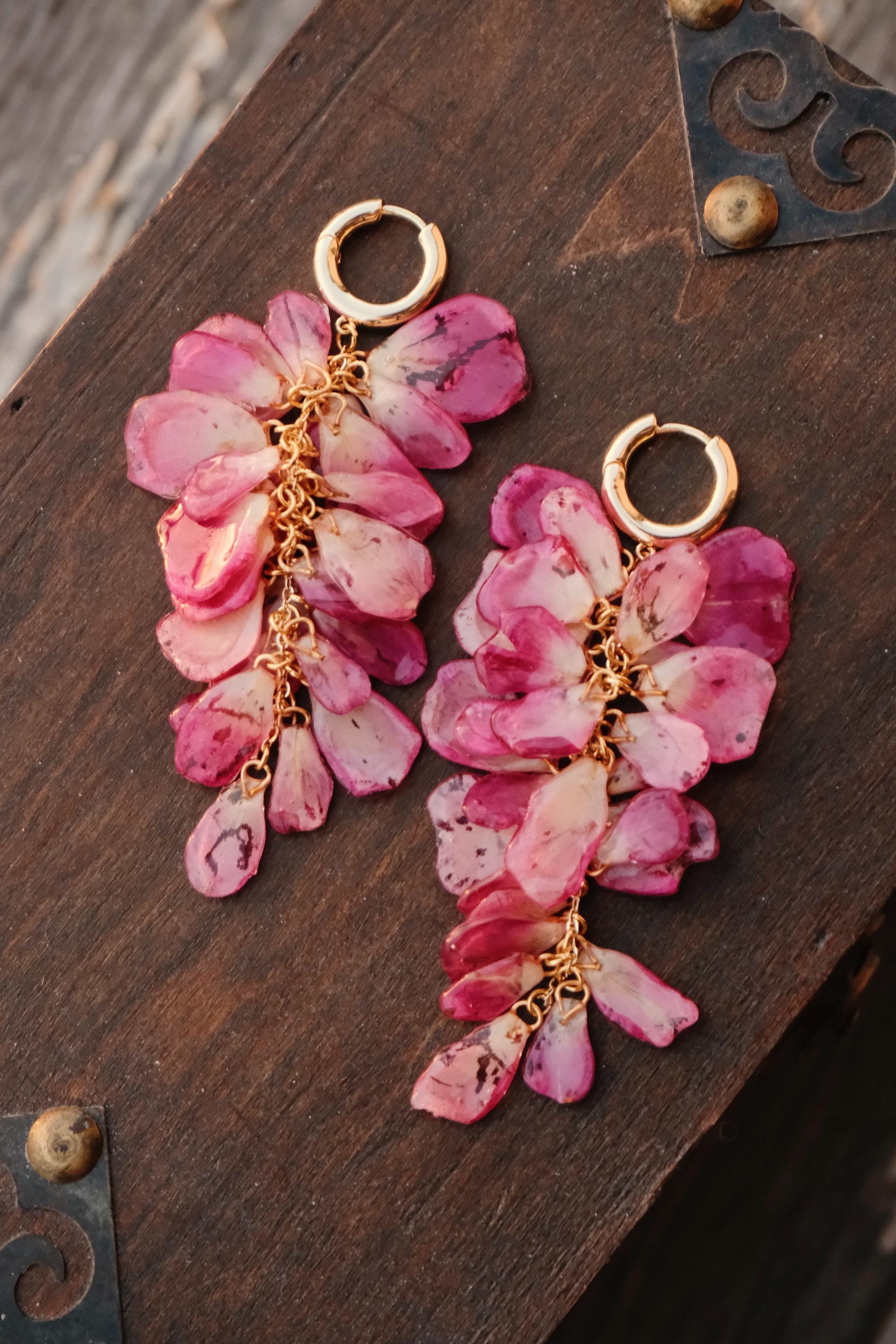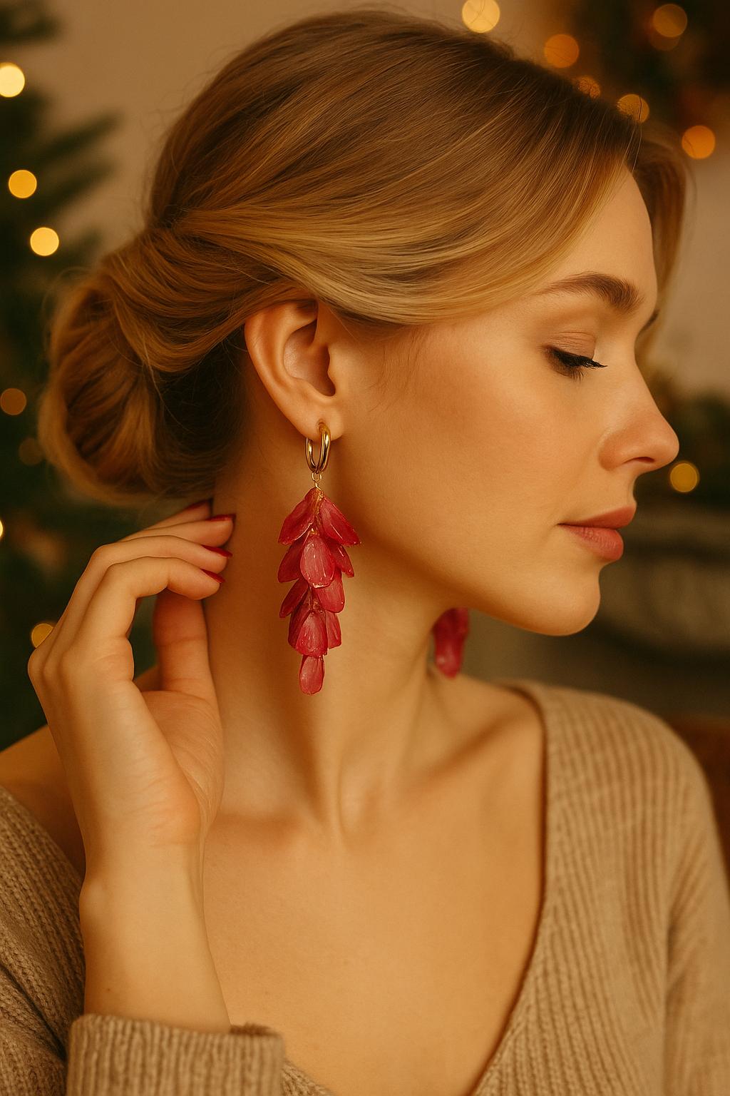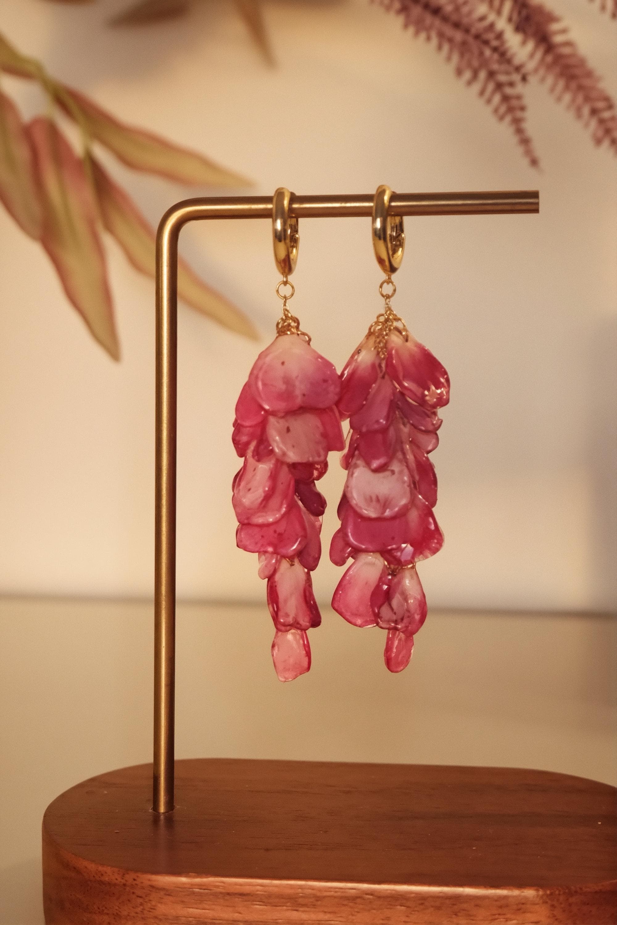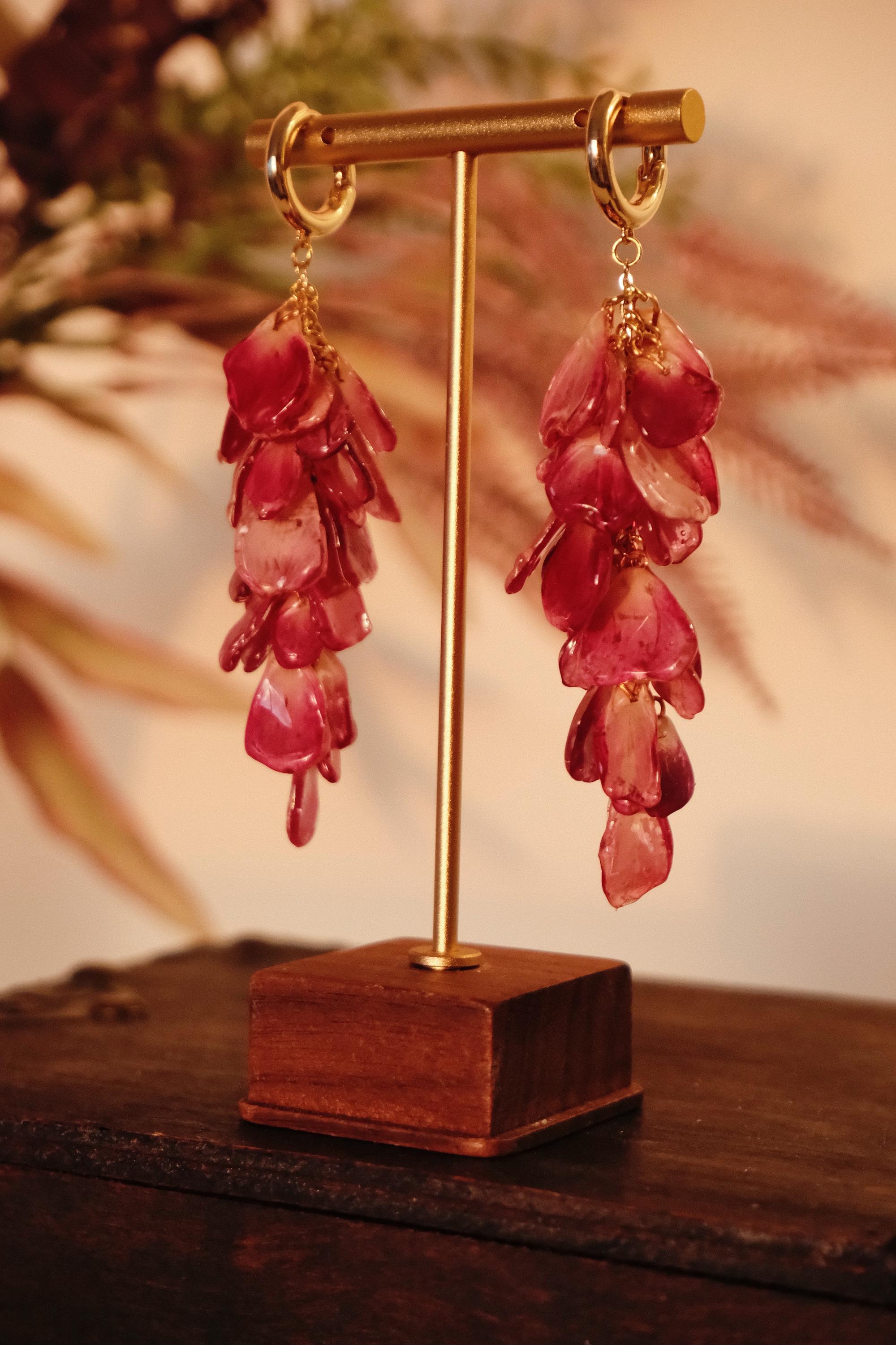 🌼 Features • One-of-a-kind floral design • Every pair is handmade – no two are exactly alike • Rich pink-red color with organic natural variation • Elegant movement when worn