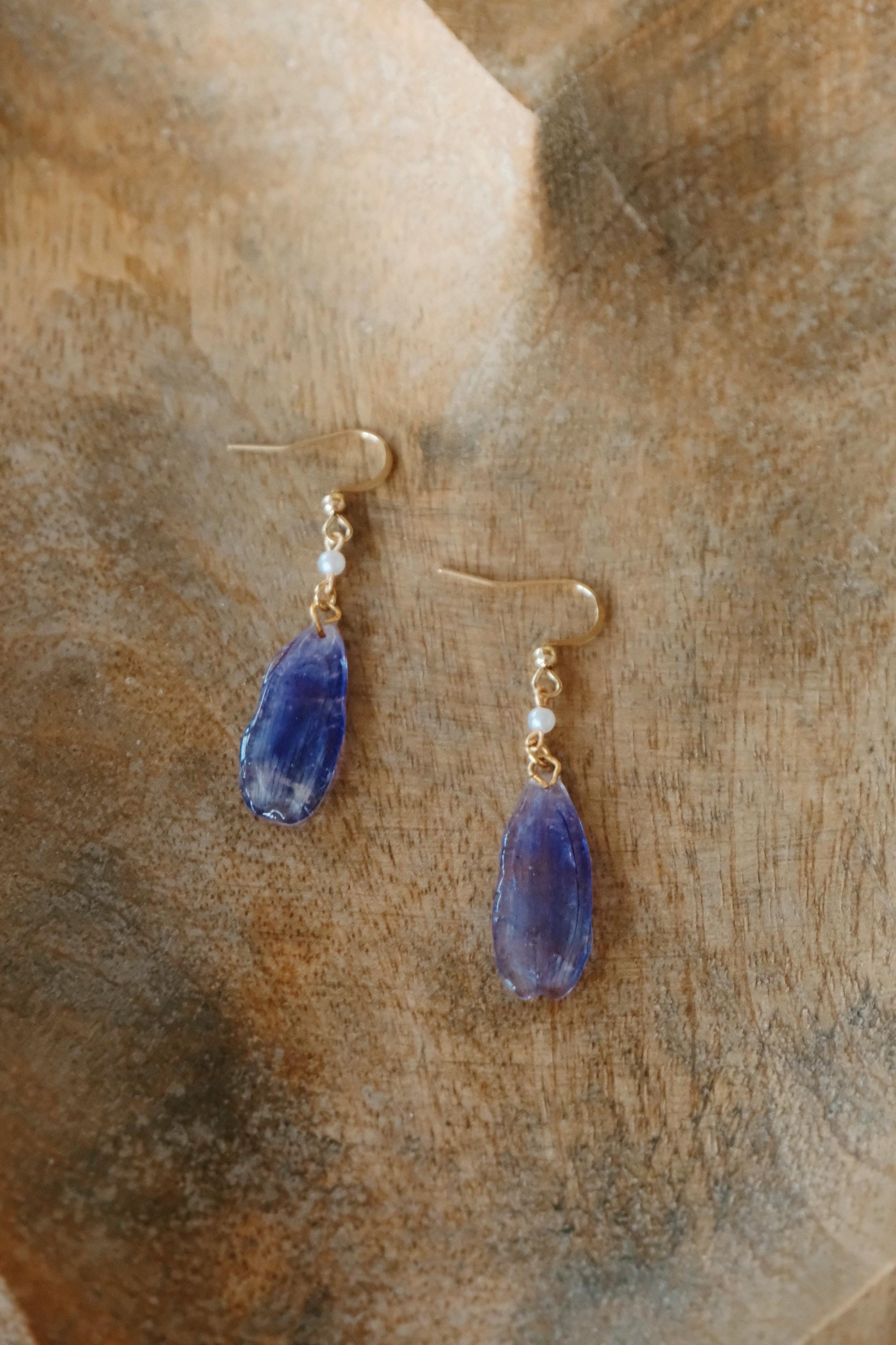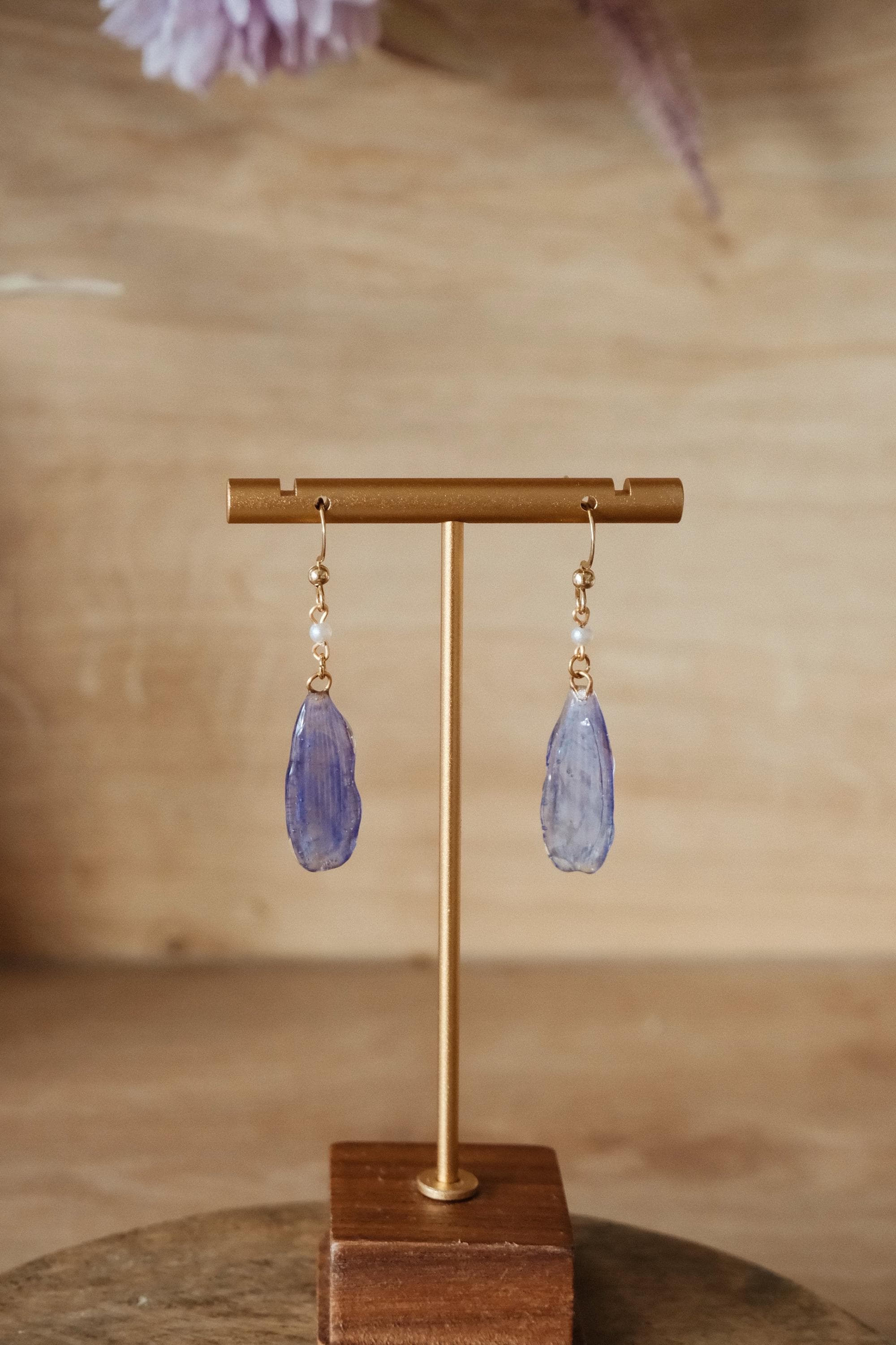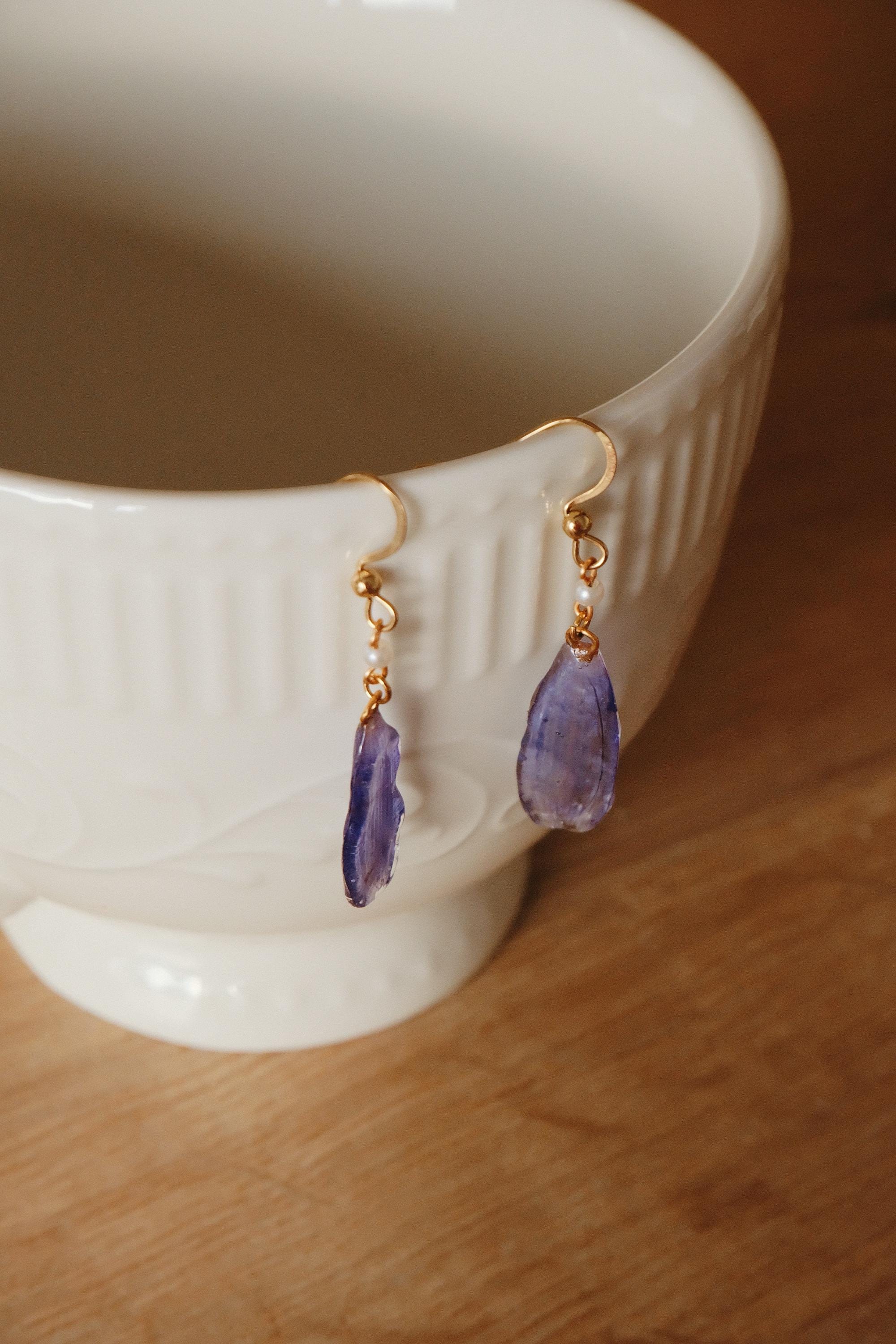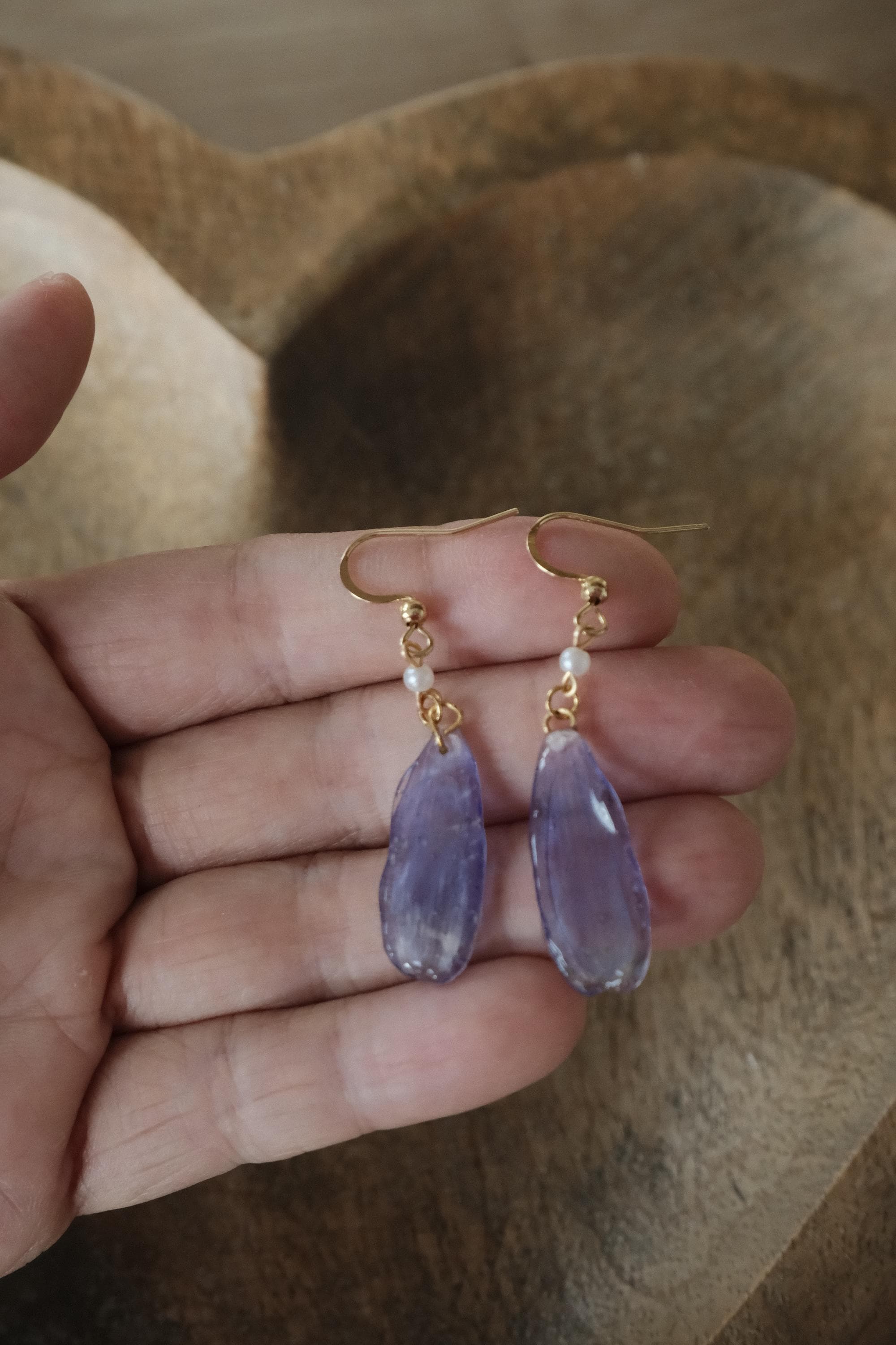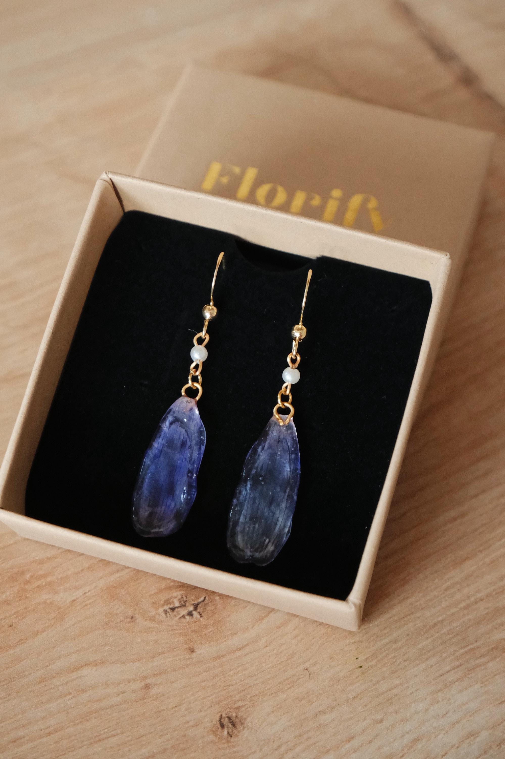 Pressed Cineraria Petal Earrings with Pearl | Real Flower Jewelry | Dried Flower Dangle Earrings | Unique Botanical Gift | florifyCreations