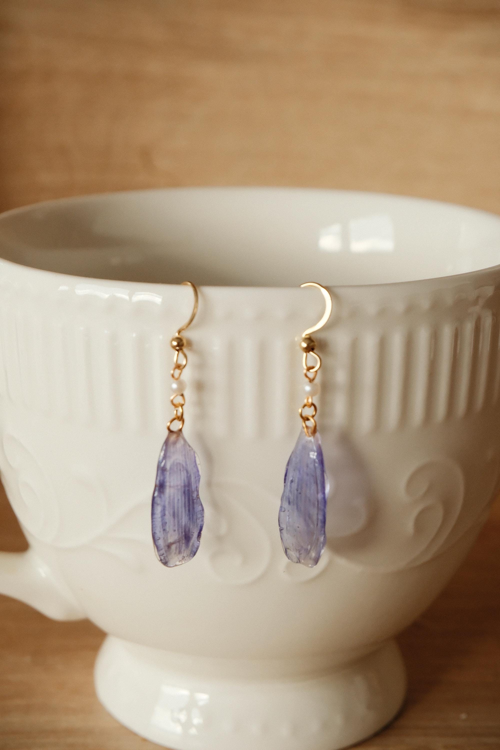 The translucent bluish-lavender tones and soft organic curves create a subtle yet poetic look. Perfect for romantic souls, nature lovers, or anyone seeking truly unique jewelry.