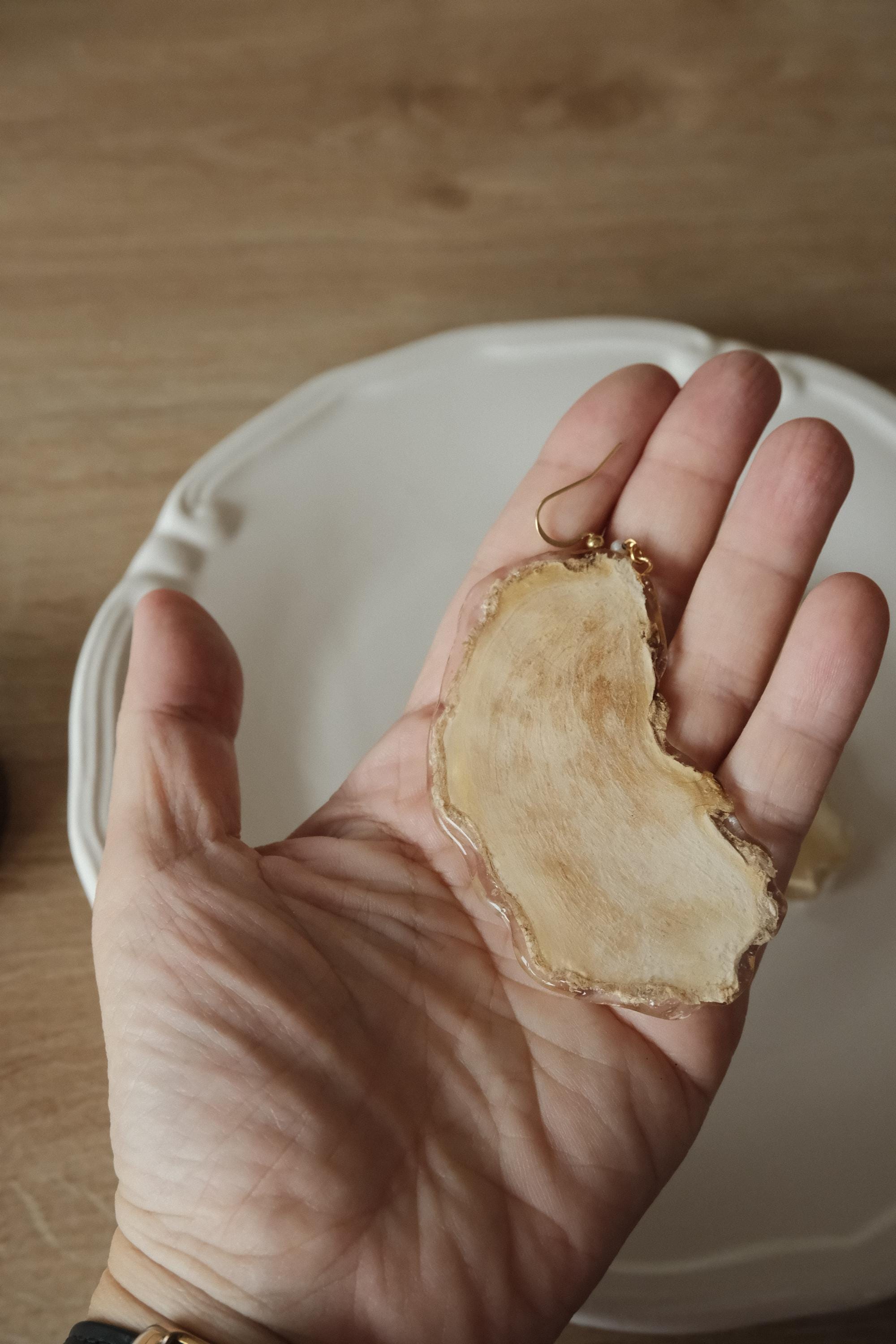 🔍 Highlights • Handmade item • Materials: real ginger slices, resin, stainless steel hooks • One-of-a-kind • Lightweight statement earrings. The weight of the earrings is around 11 g per pair. • Packaged beautifully & ready for gifting • Ships from Germany