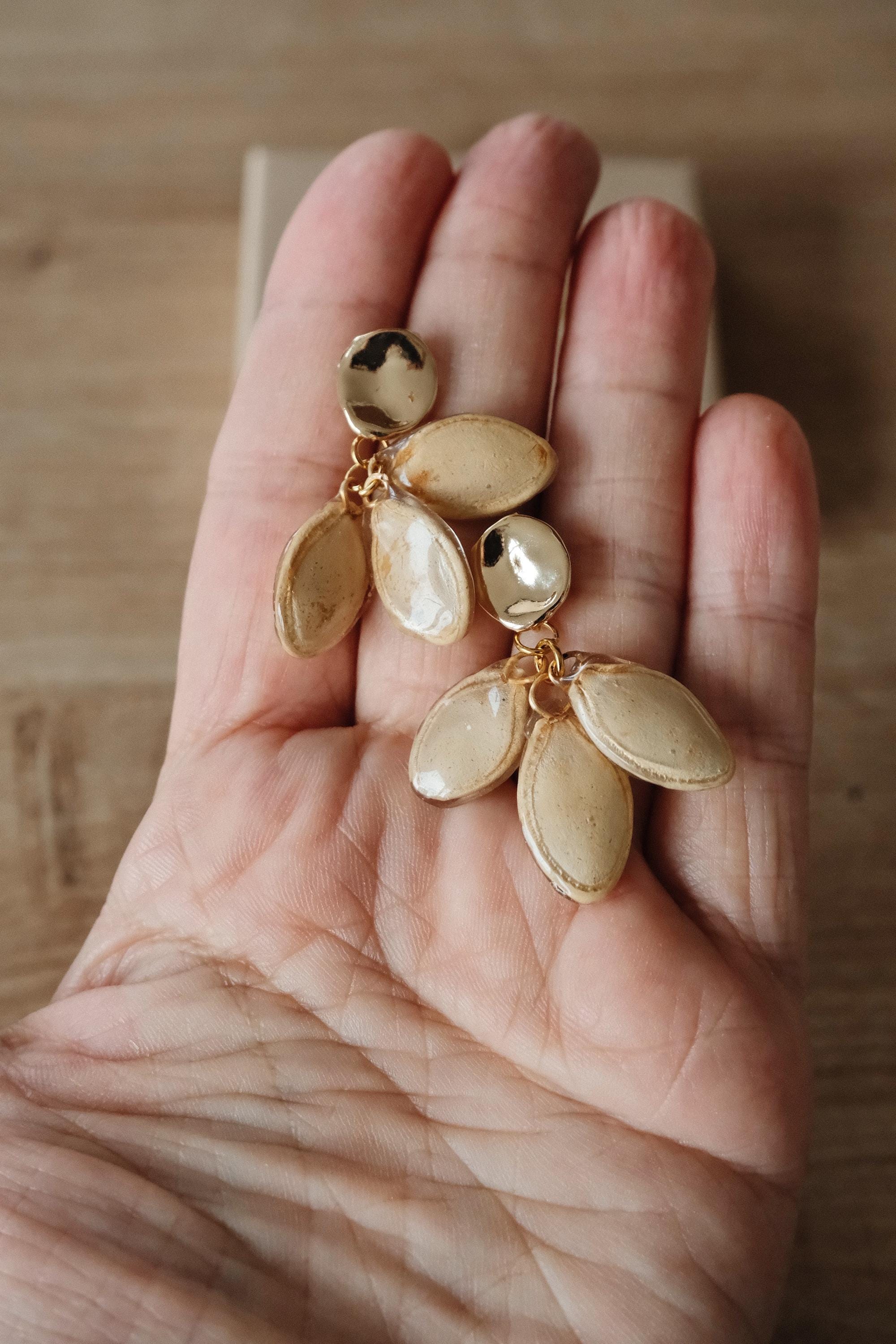 π° Materials: Real pumpkin seeds, resin, 18k gold-plated studs π Packaging: Your earrings come in a beautifully packaged gift box β ready to be gifted or treasured.