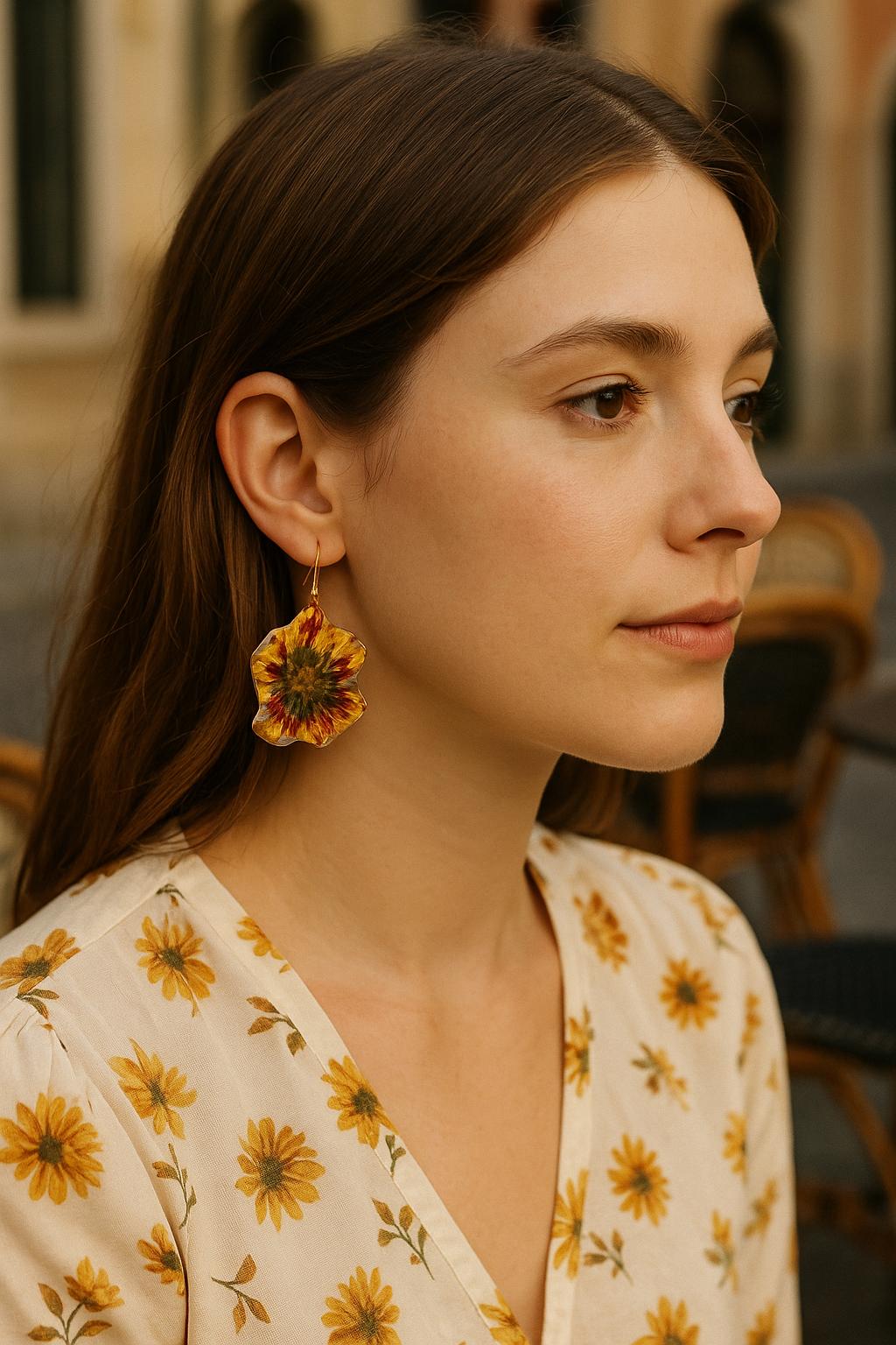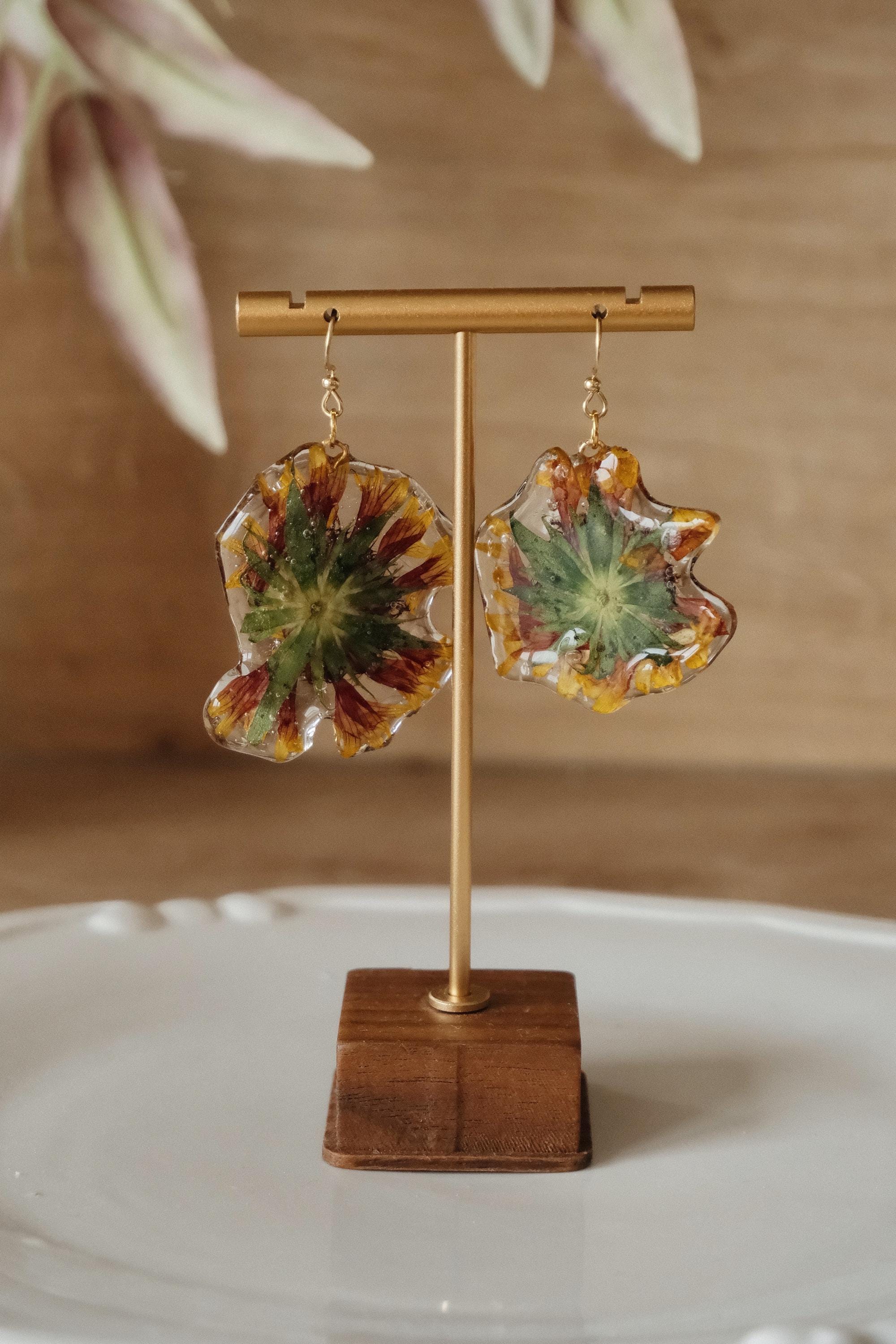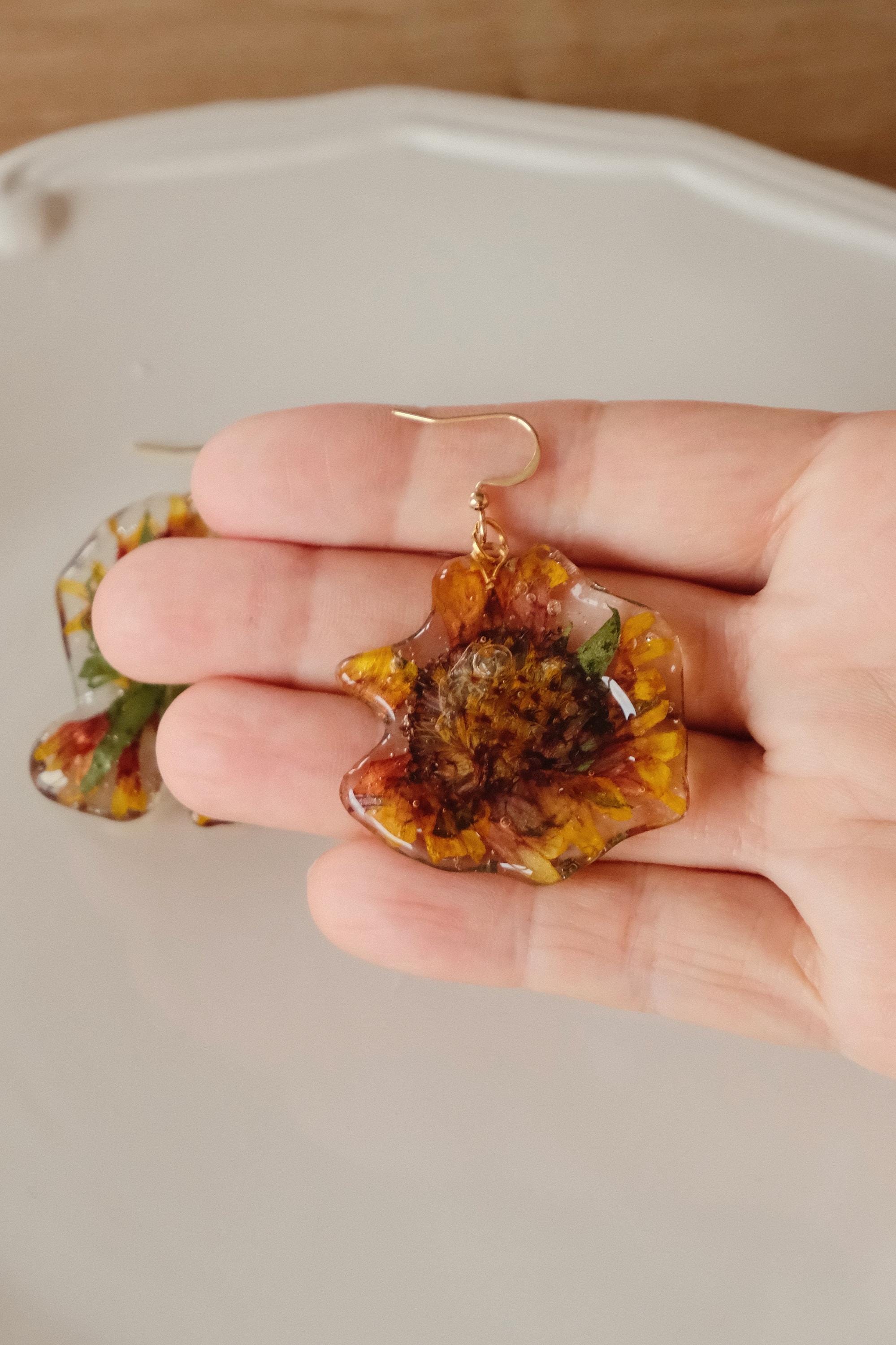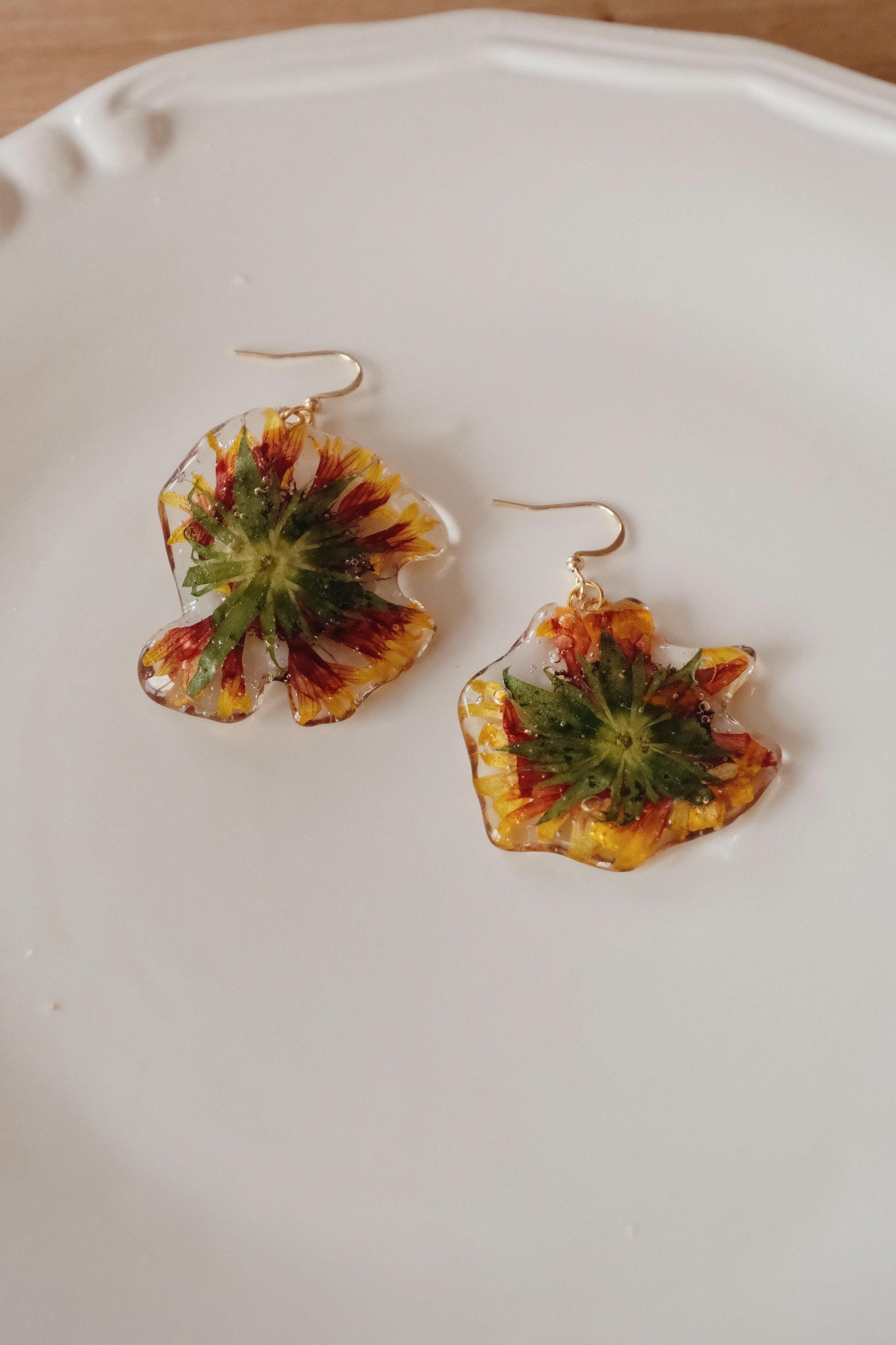 ✨ Details • Material: Real chrysanthemum flowers, resin • Hook material: Stainless steel (hypoallergenic) • Style: Organic shape — each piece follows the natural shape of the flower • Lightweight & comfortable for daily wear • Handmade individually, no two pieces are identical