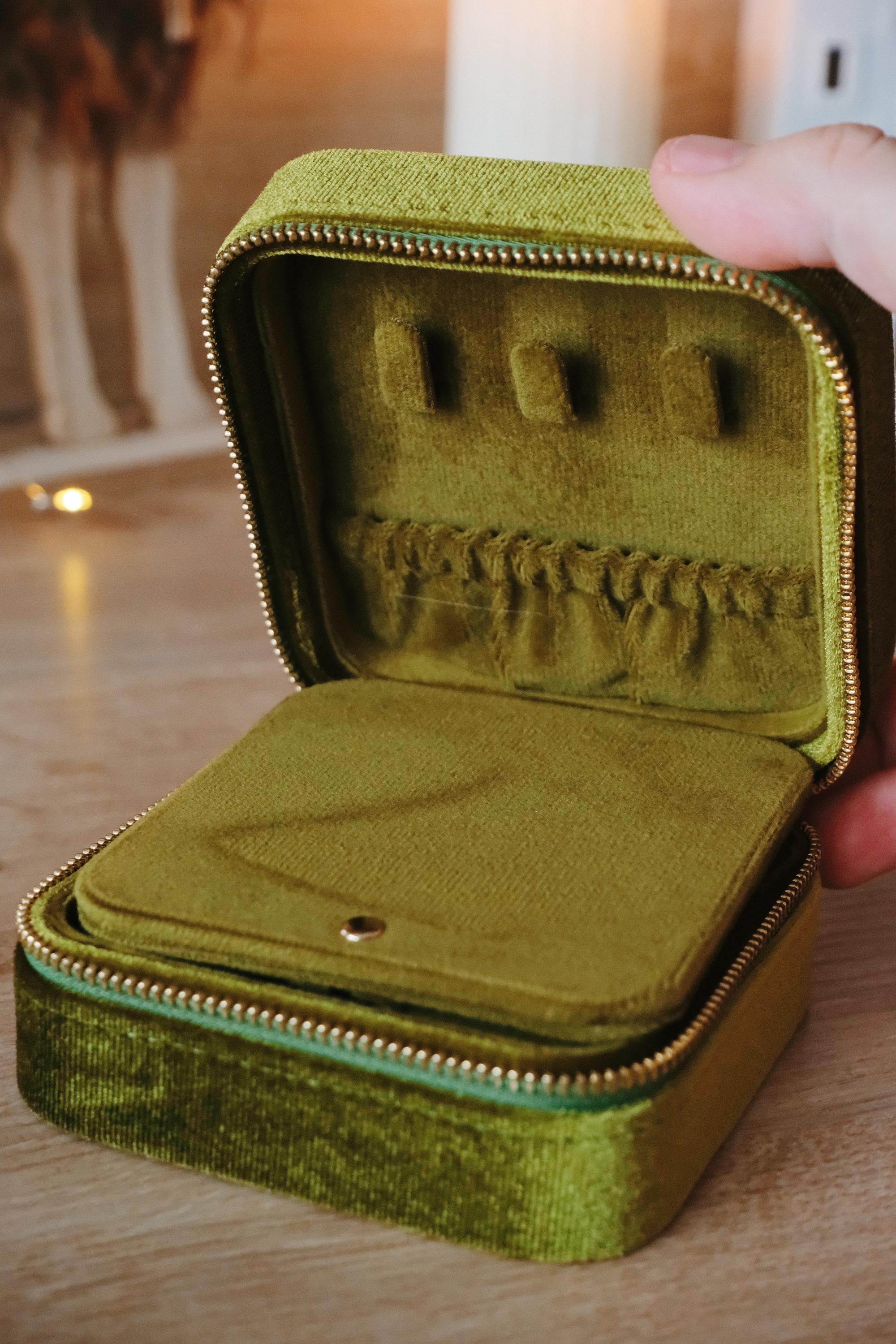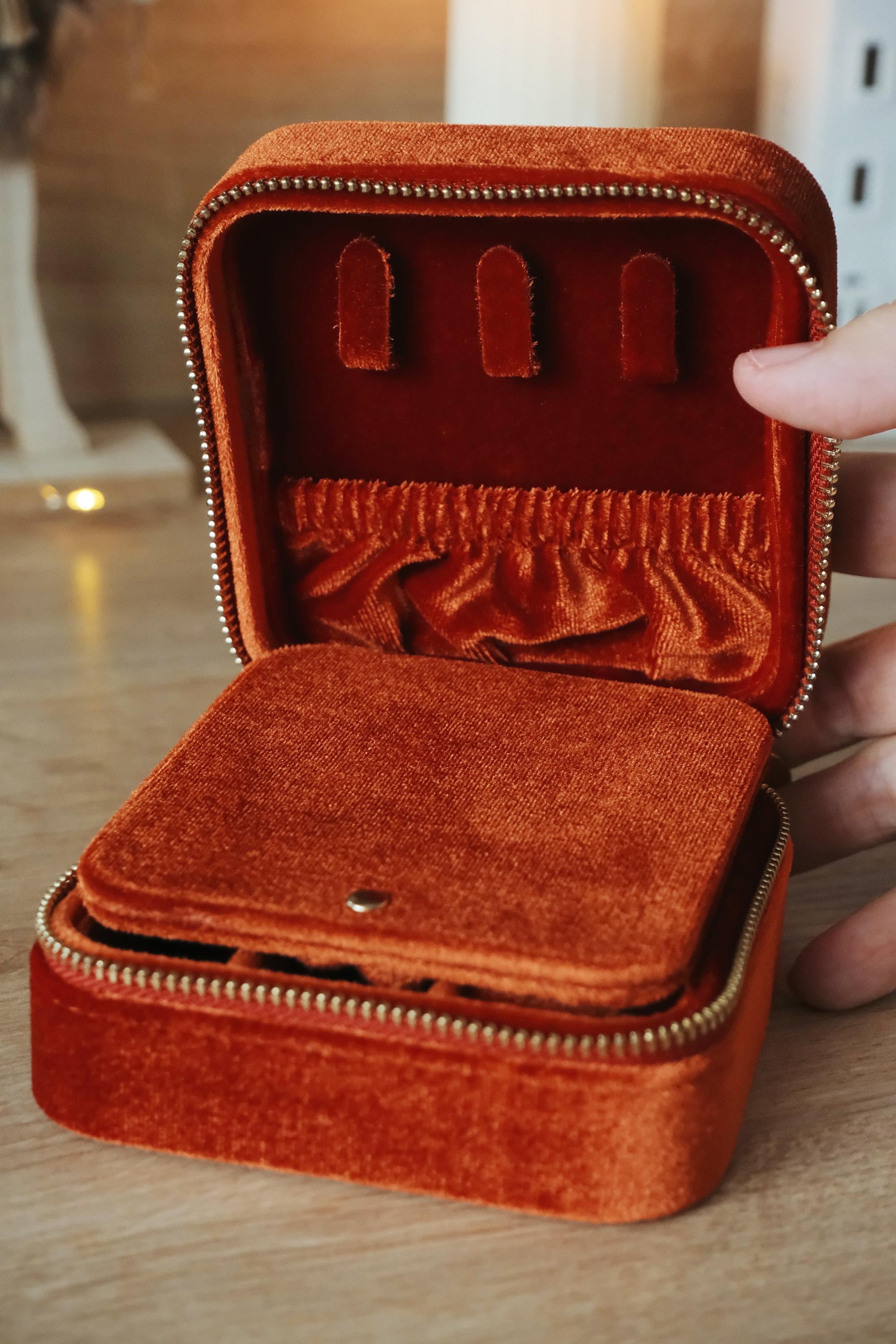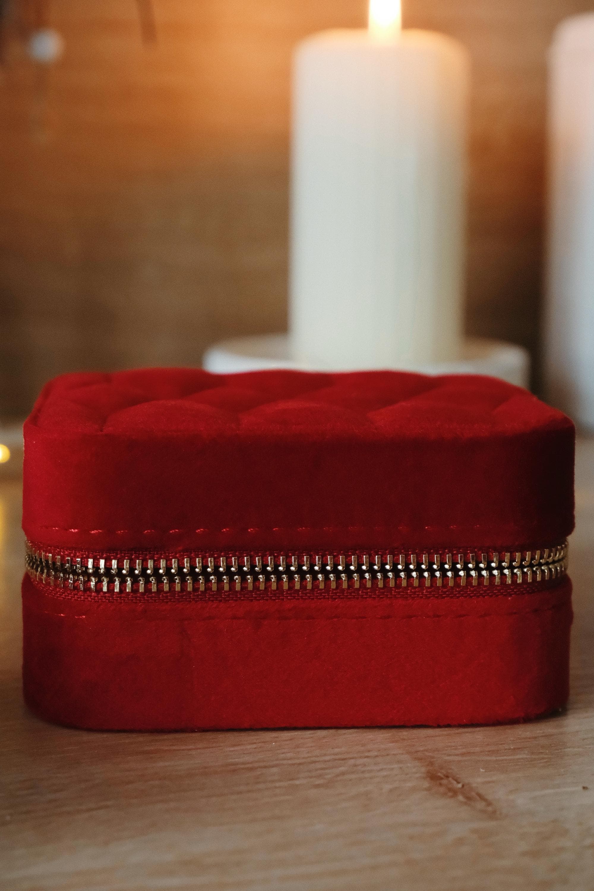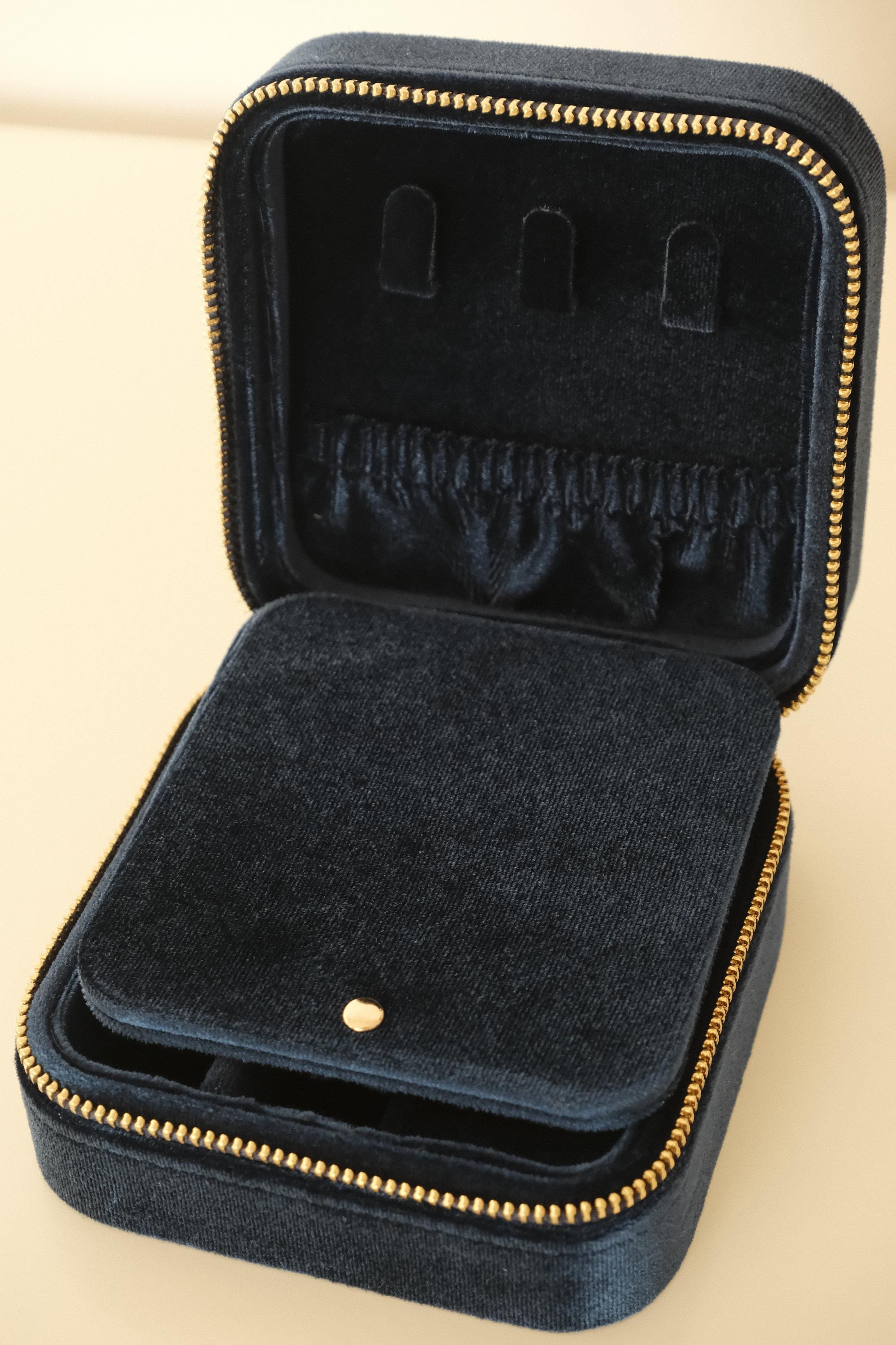 ✨ Product Features • Material: Premium soft velvet • Size: 100 × 100 × 50 mm • Built-in mirror • Two-layer interior design • Multiple compartments for rings, earrings, bracelets & small keepsakes • Smooth gold zipper for an elegant finish • Perfect for travel or daily organization